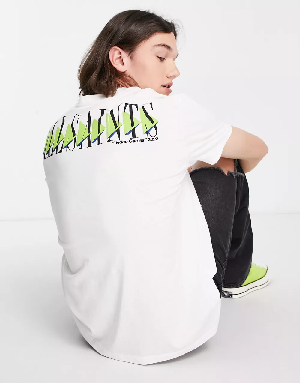 - AllSaints momentum t-shirt with back print in white