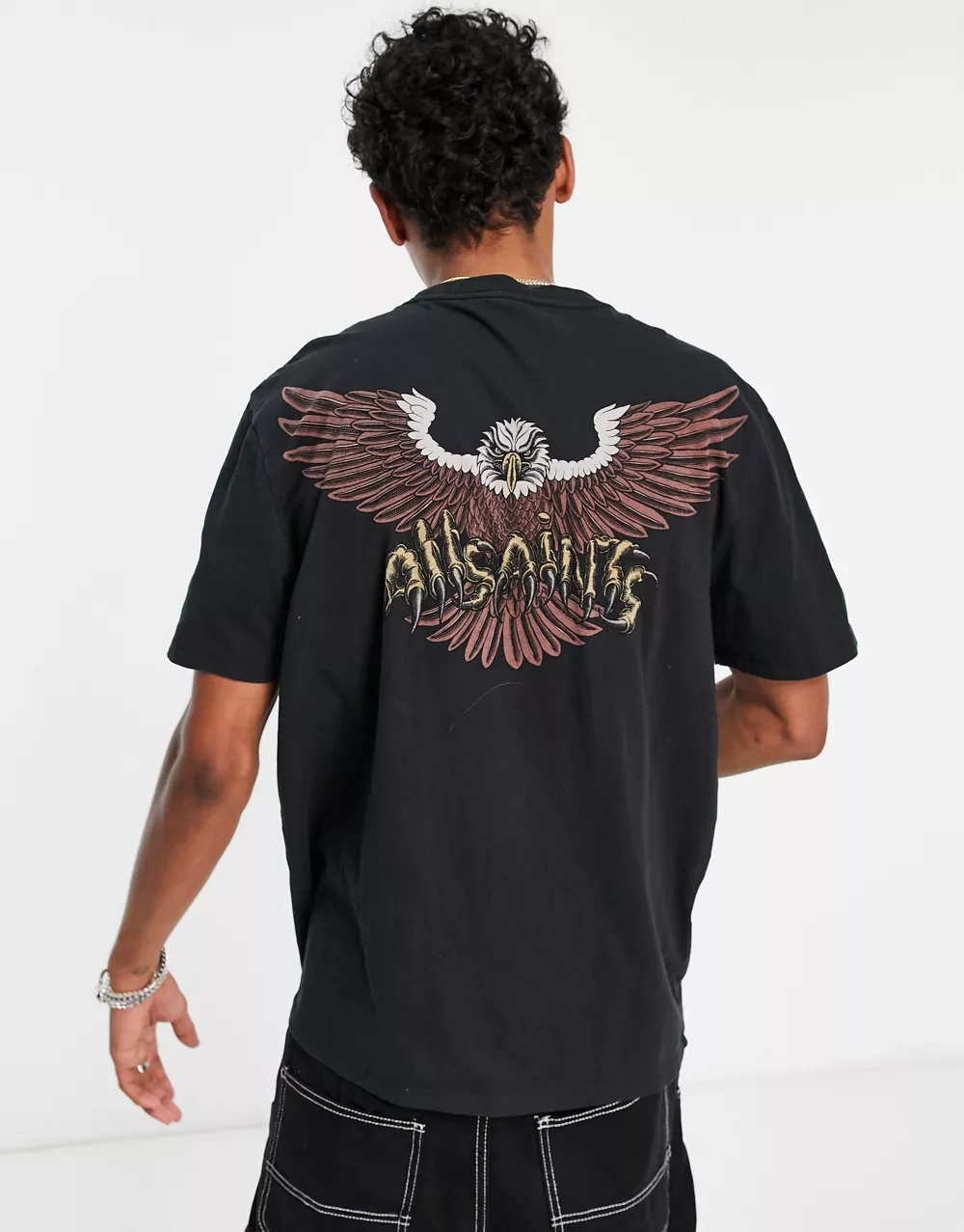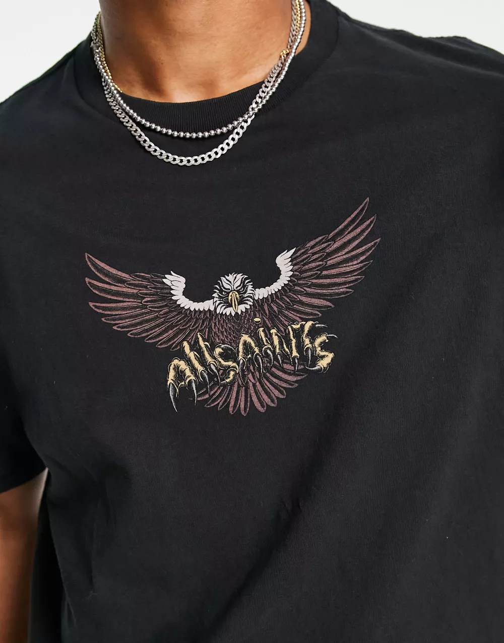 - AllSaints Swoopy graphic t-shirt in washed black