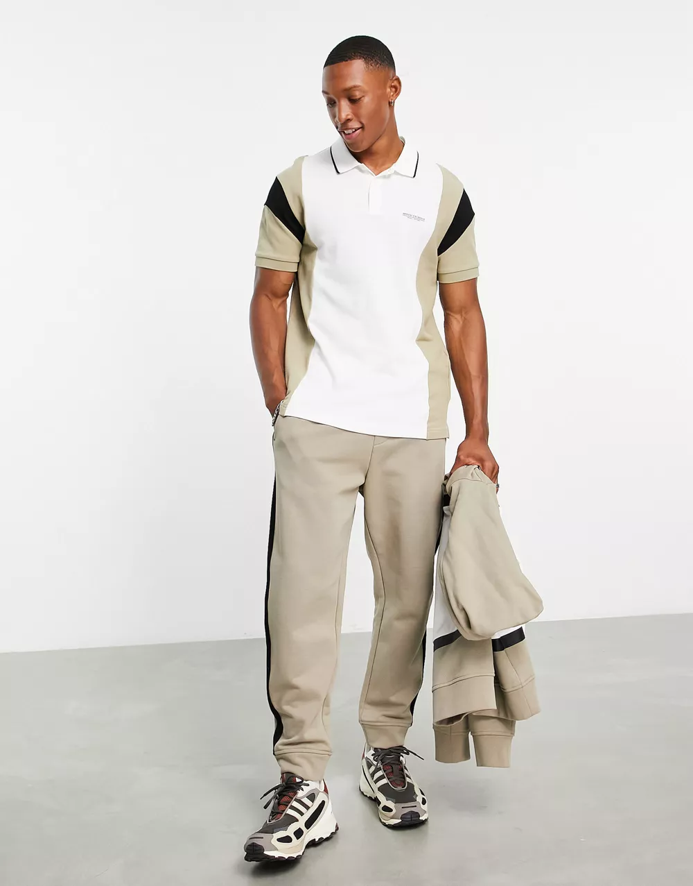 Tommy Jeans novel stripe colourblock skater fit rugby polo in blue
