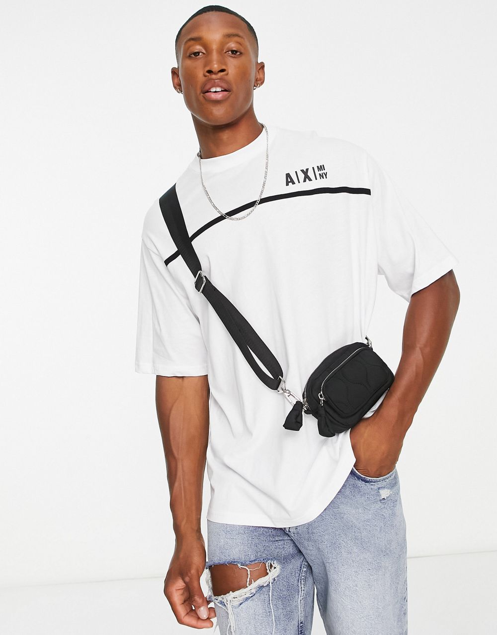 - Armani Exchange logo relaxed fit t-shirt in white