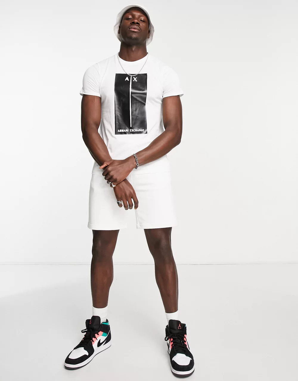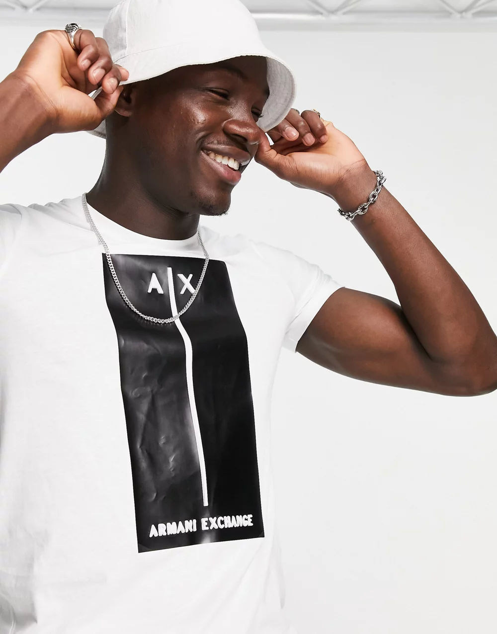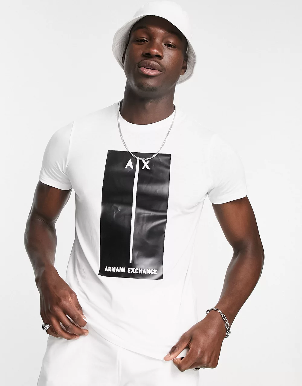 - Armani Exchange t-shirt with embossed block logo in white