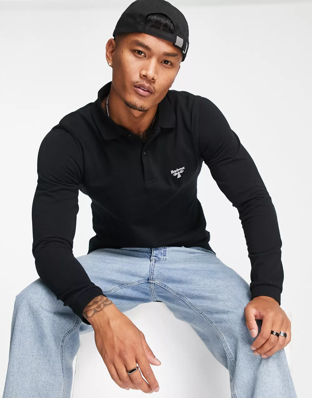 Polo Ralph Lauren Big & Tall large tartan back print long sleeve top in black