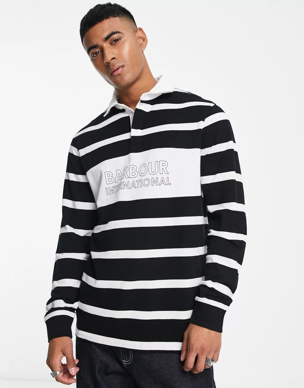 - Barbour International Solar long sleeve stripe polo shirt in black