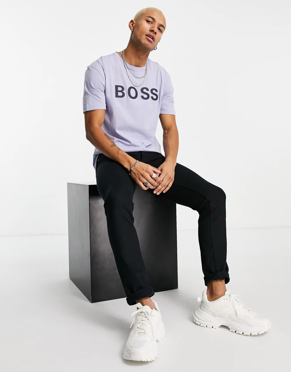 Boss Athleisure tee 5 t-shirt with contrast pocket panel in navy