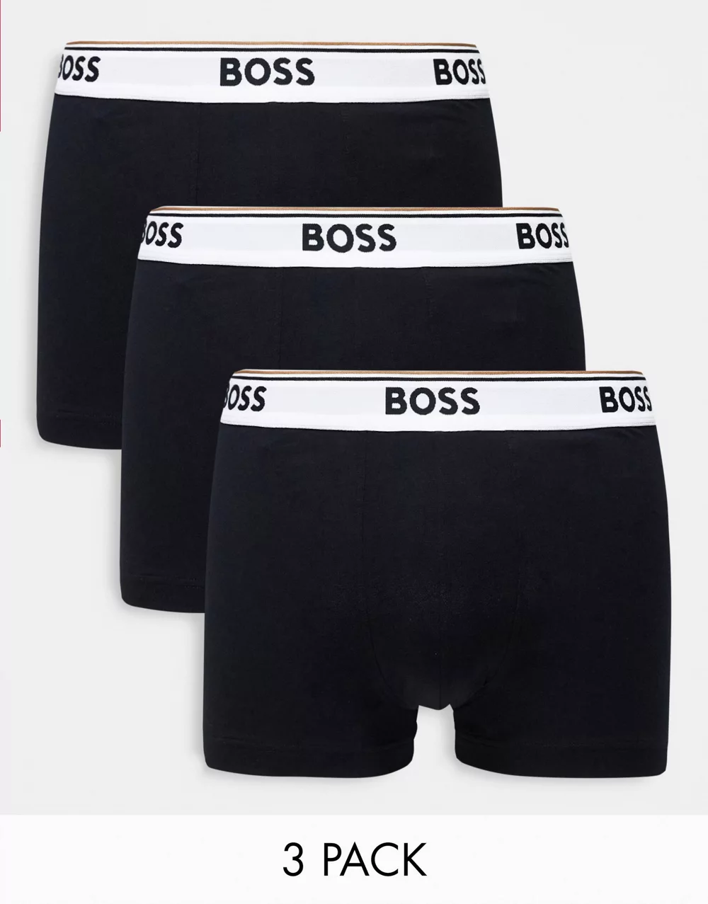- BOSS Bodywear 3 pack of trunks with contrast waistband in black