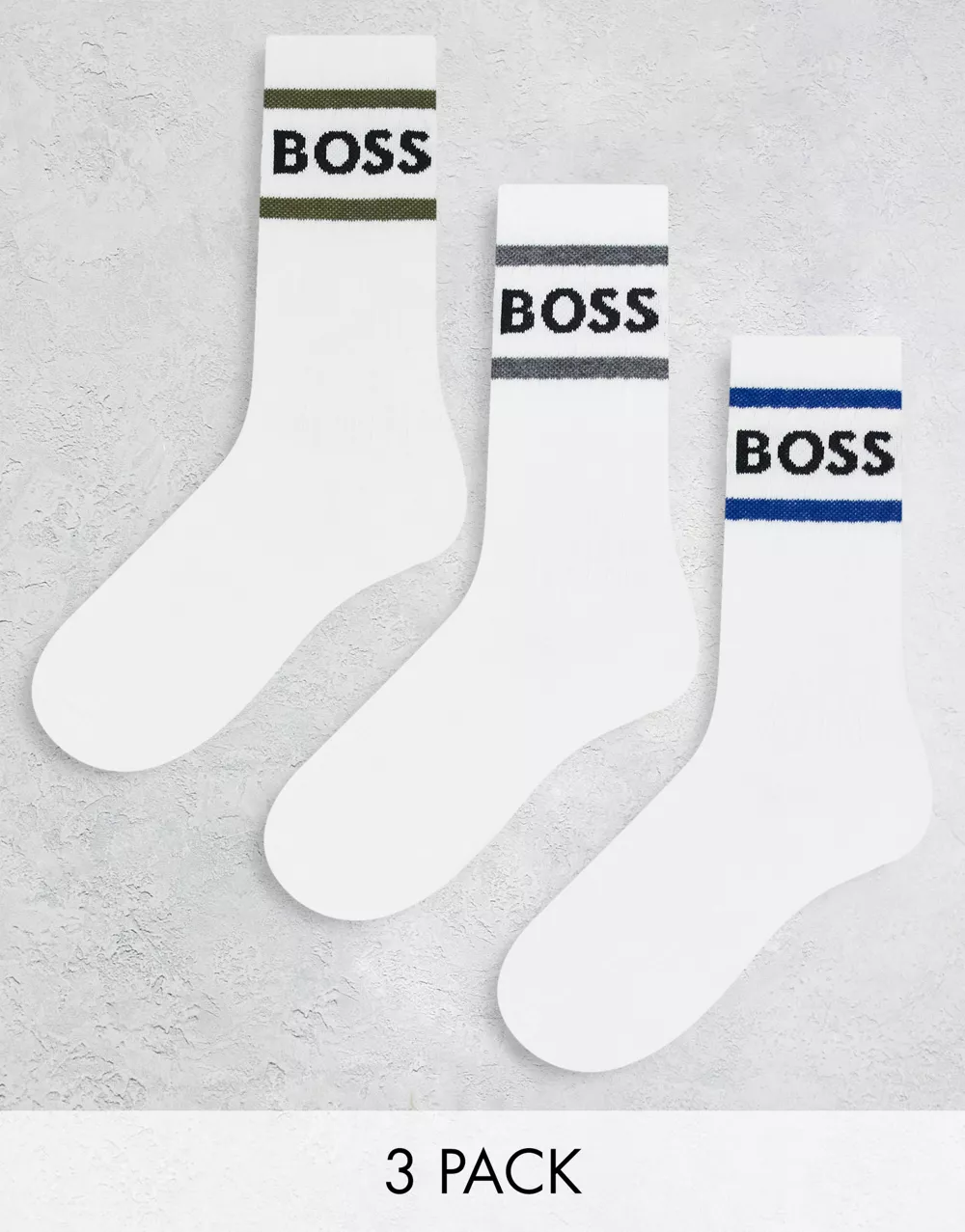 - BOSS Bodywear 3 pack ribbed quarter socks in white