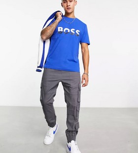- BOSS Green Tee 1 large logo t-shirt in medium blue
