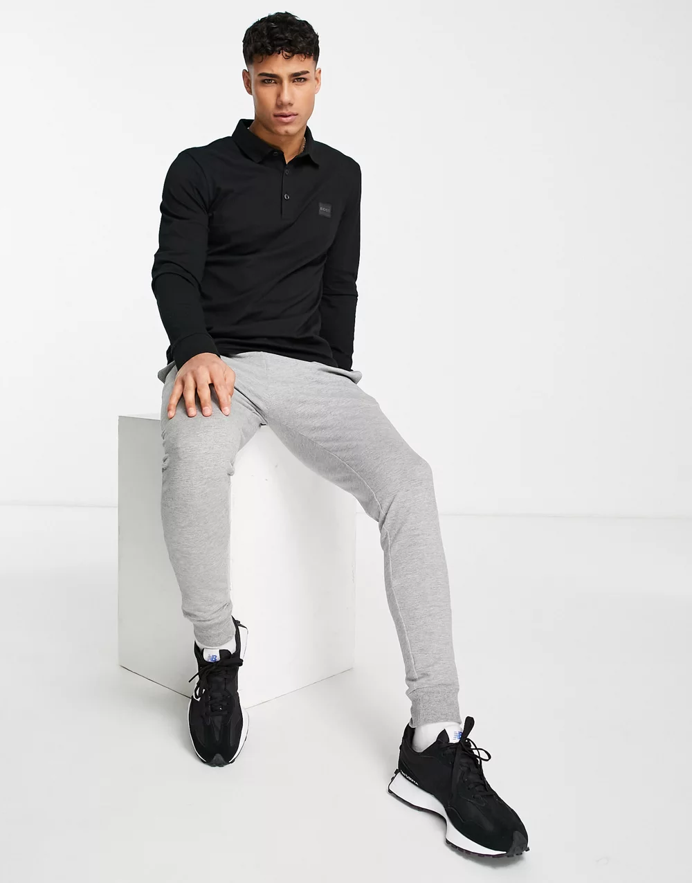 - BOSS Orange Passer by long sleeve polo shirt in black