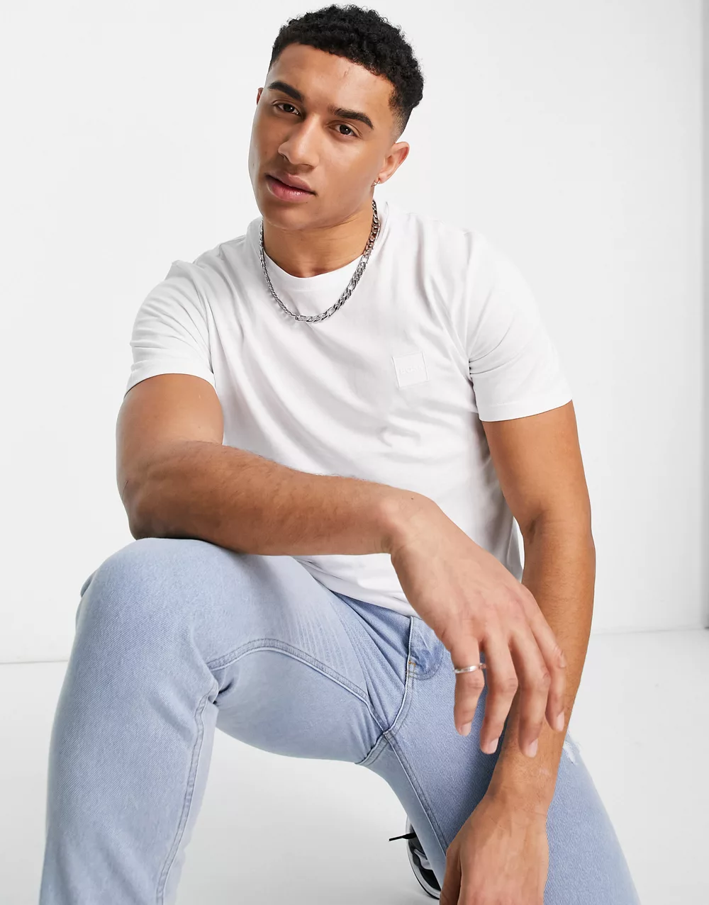 BOSS Orange Thinking floral print block logo t-shirt in white