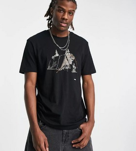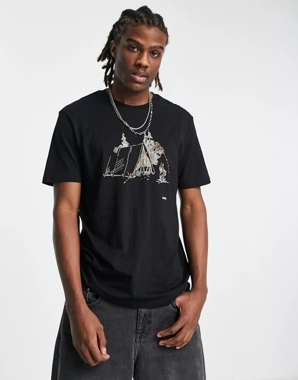 - BOSS Orange Teetuned 2 t-shirt in black with camping graphics