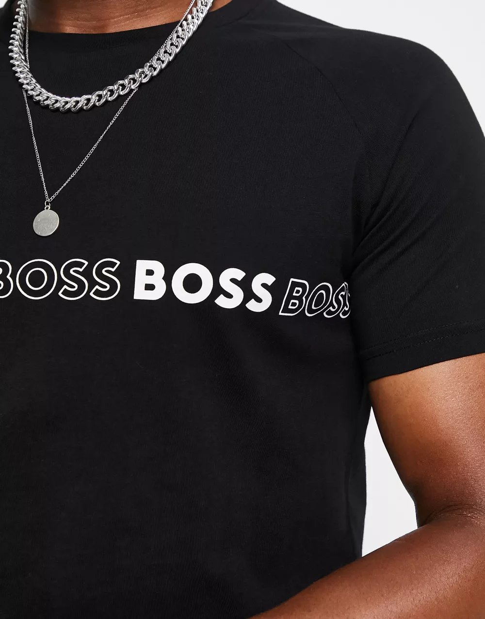 - BOSS Swimwear slim fit t-shirt in black with central repeat logo