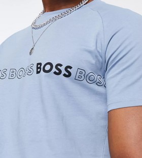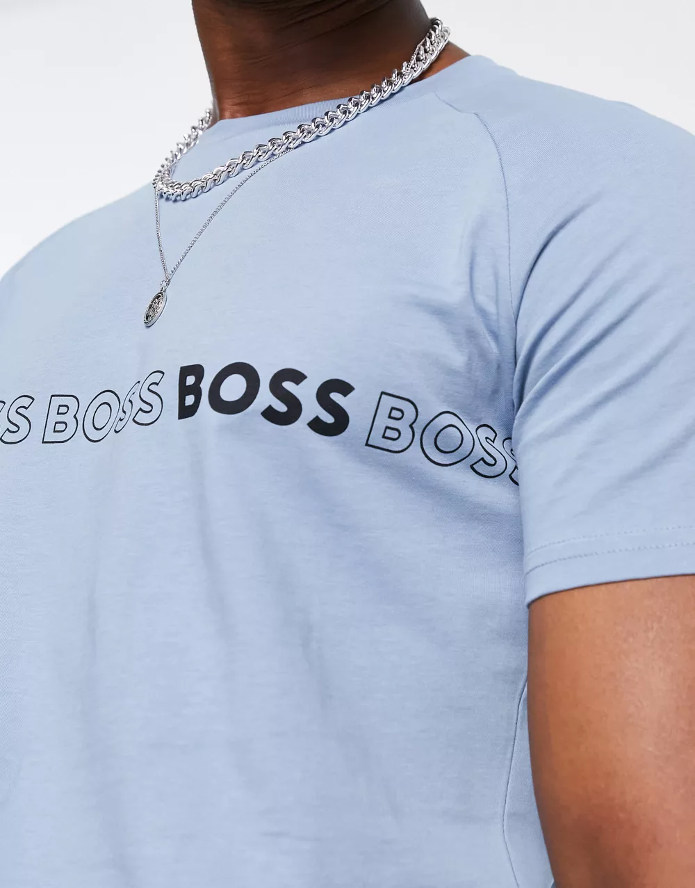 - BOSS Swimwear slim fit t-shirt in light blue with central repeat logo