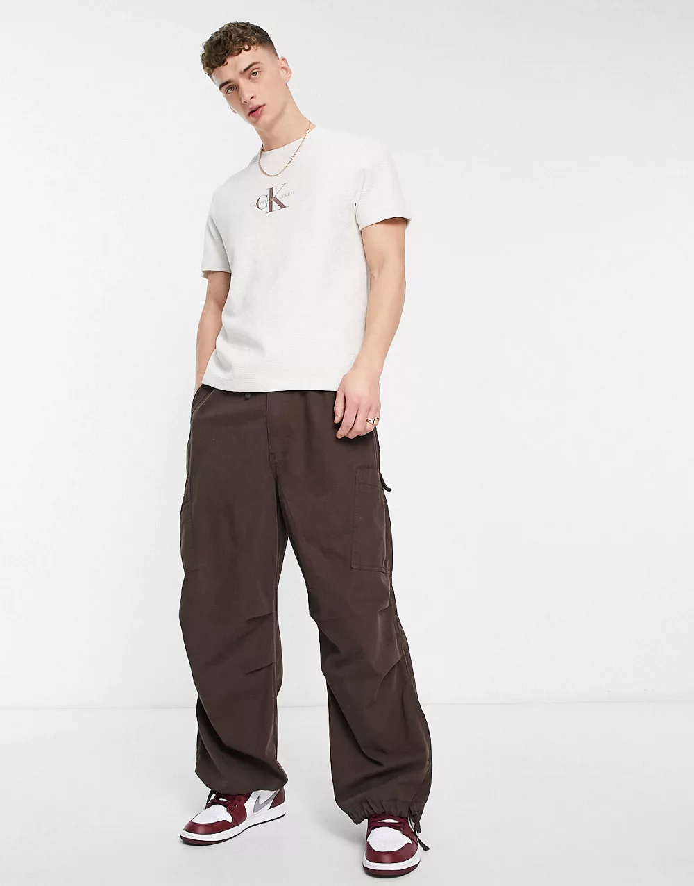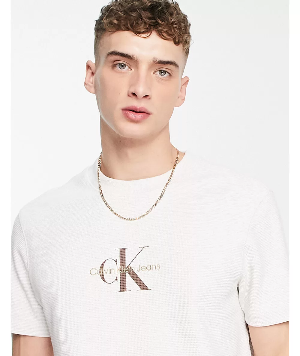 - Calvin Klein Jeans archival monologo waffle relaxed fit t-shirt in white marl