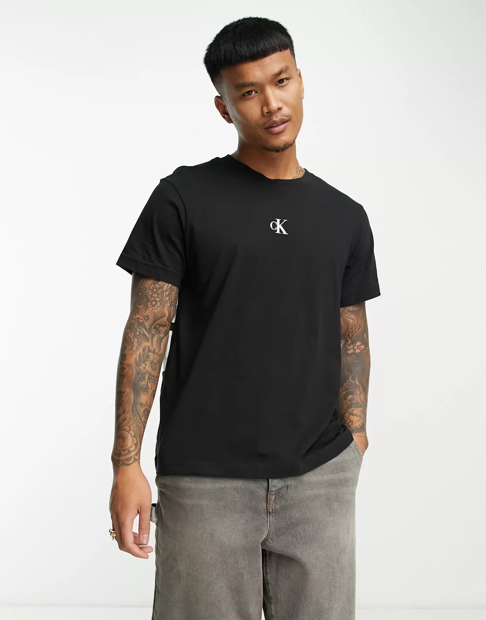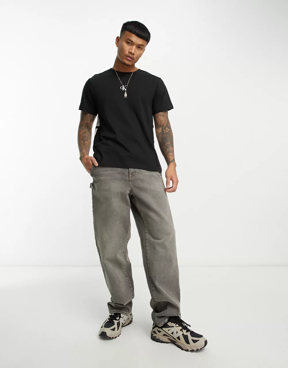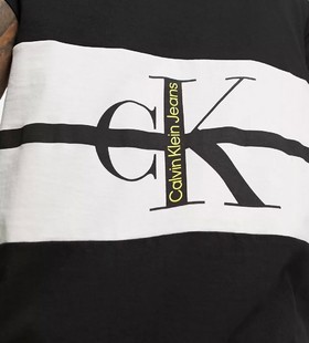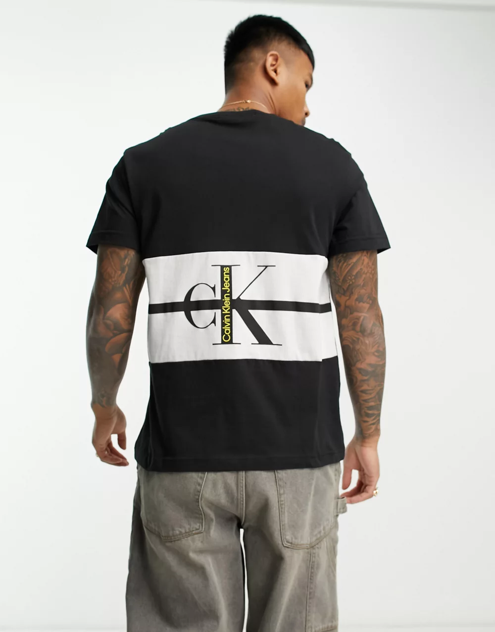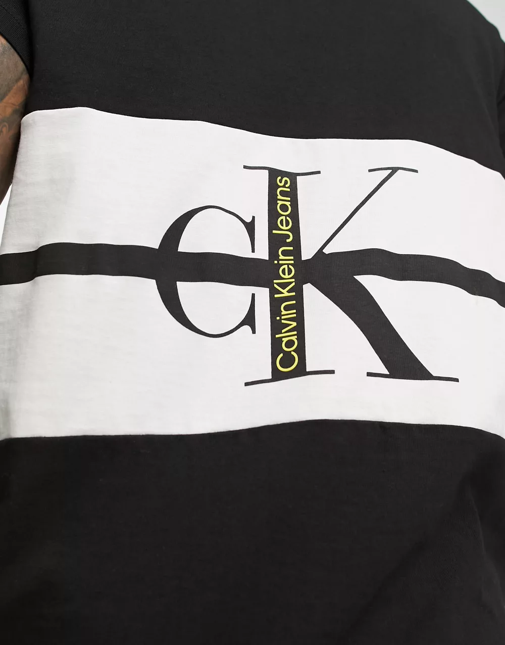 - Calvin Klein Jeans back stripe logo colourblock t-shirt in black