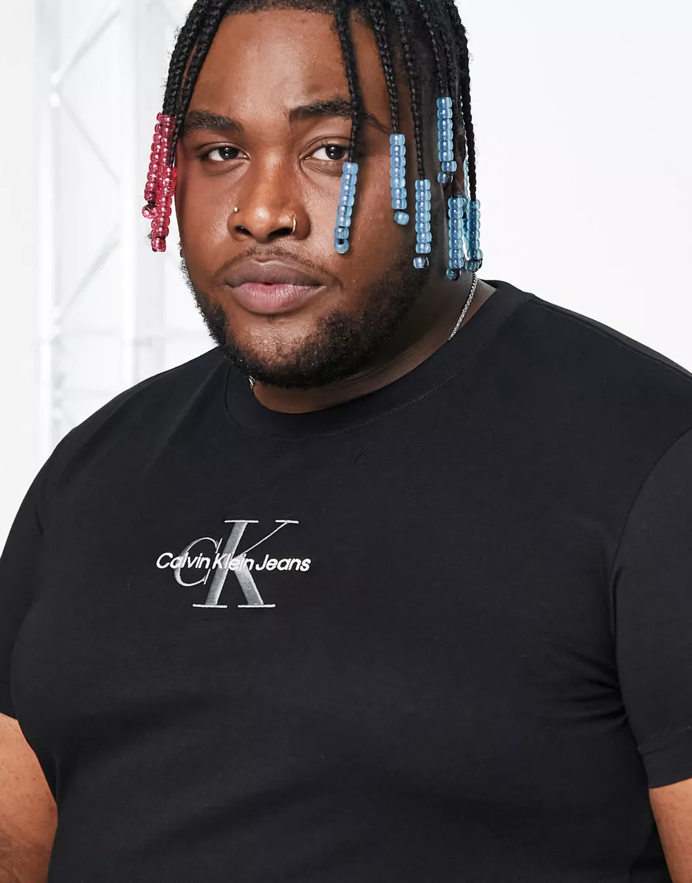 - Calvin Klein Jeans Big & Tall monogram logo t-shirt in black