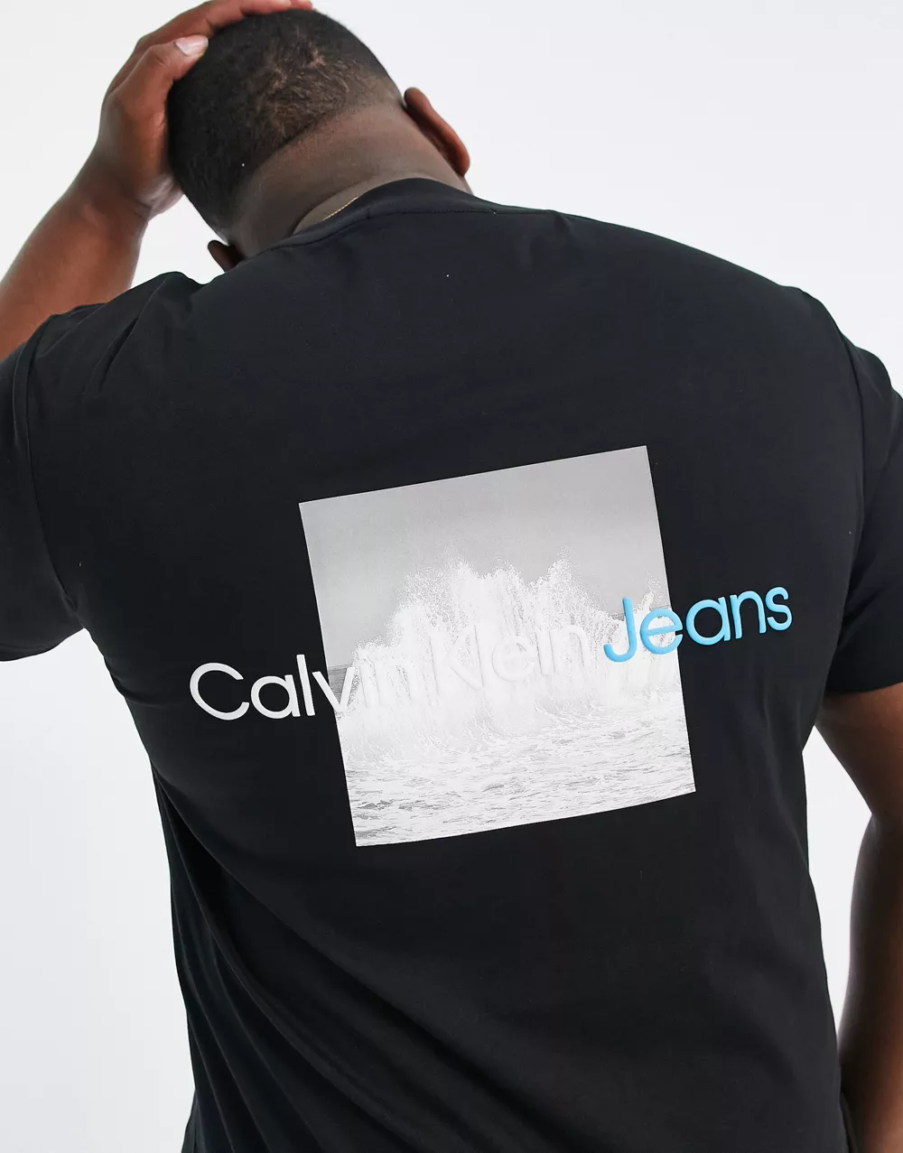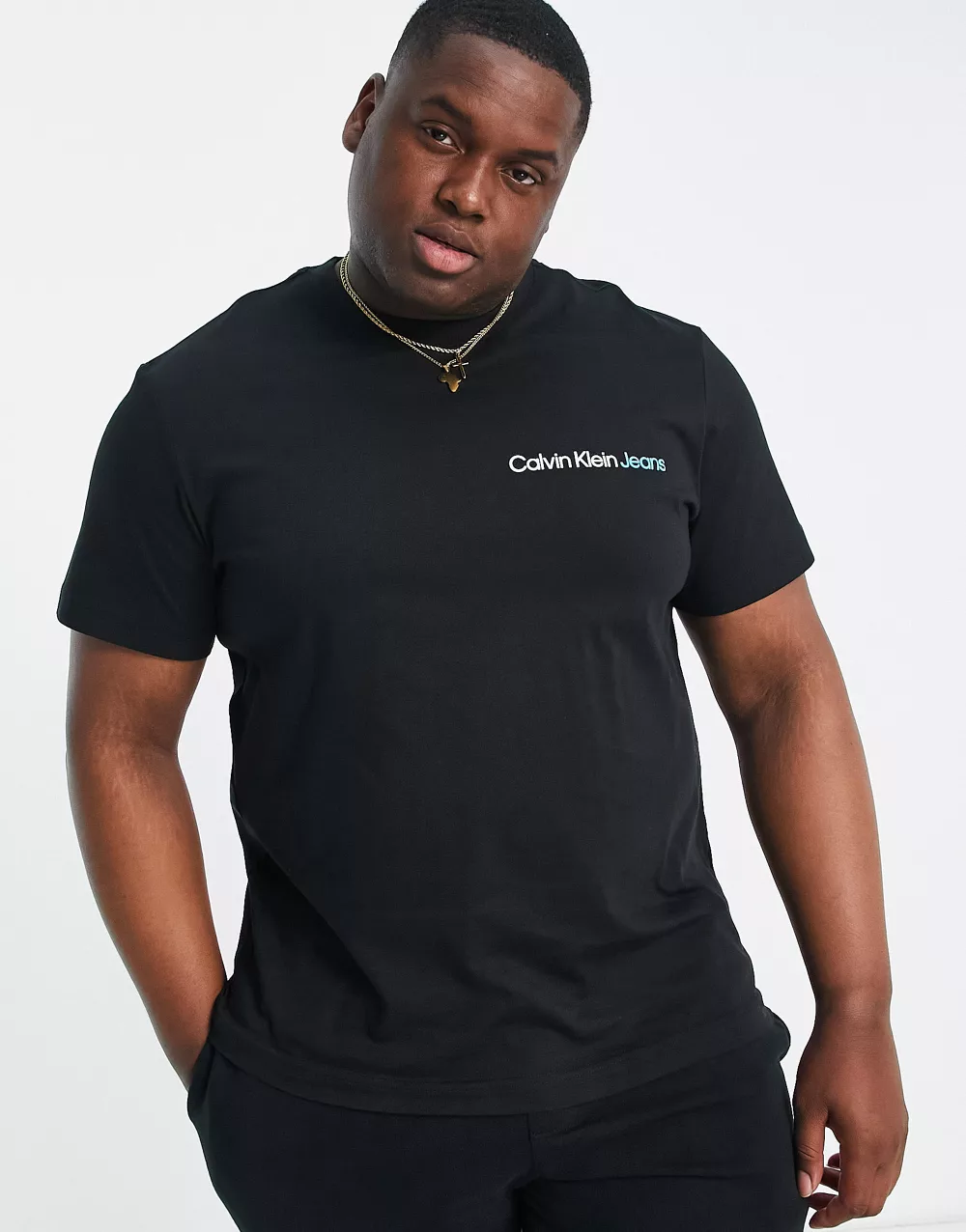 - Calvin Klein Jeans Big & Tall splash back graphic t-shirt in black