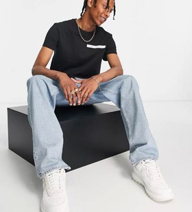 - Calvin Klein Jeans cotton blend scattered urban back graphic t-shirt in black - BLACK
