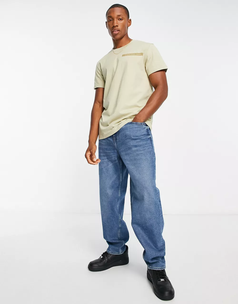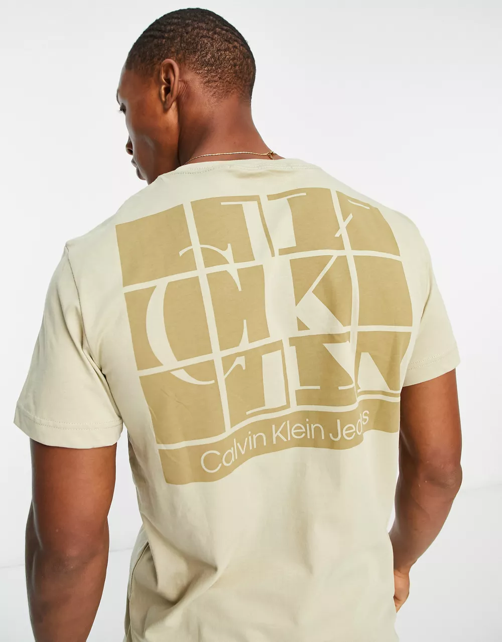 - Calvin Klein Jeans cotton blend scattered urban back graphic t-shirt in stone