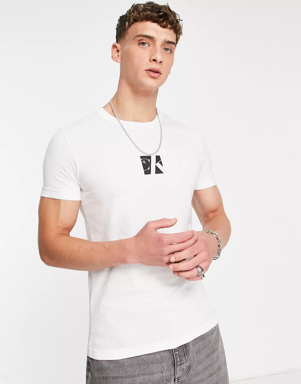 - Calvin Klein Jeans cotton blend small center box t-shirt in white - WHITE