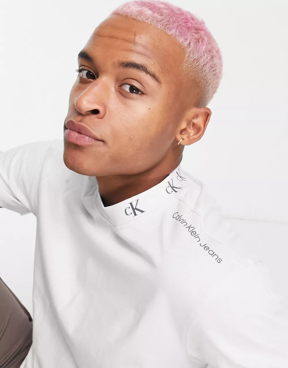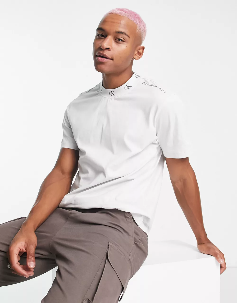 - Calvin Klein Jeans cotton logo jacquard neck t-shirt in light grey