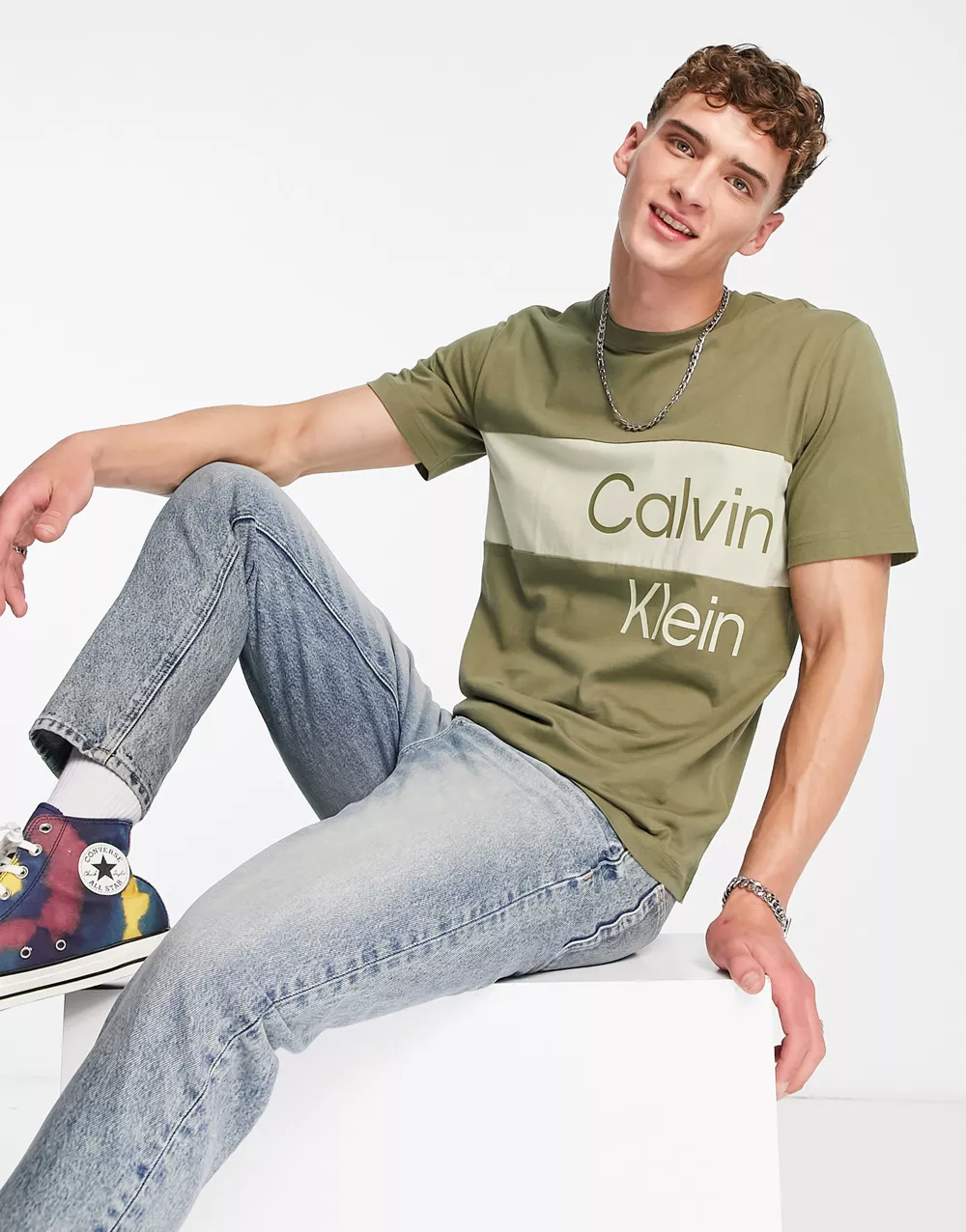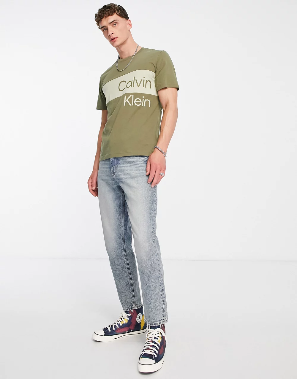 - Calvin Klein Jeans institutional blocking t-shirt in khaki