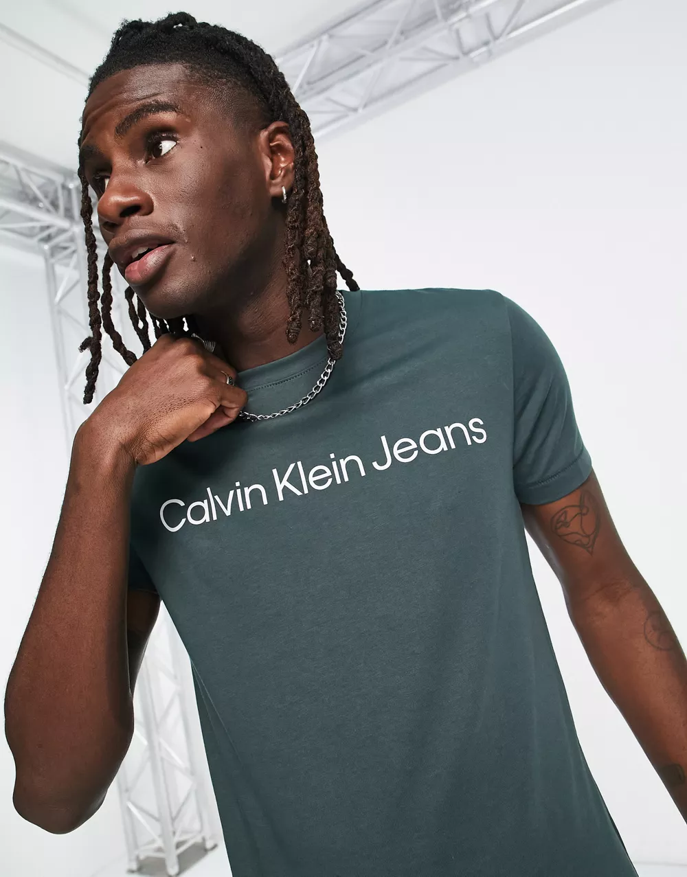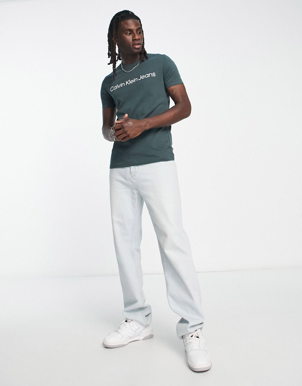 - Calvin Klein Jeans institutional logo slim fit t-shirt in dark green