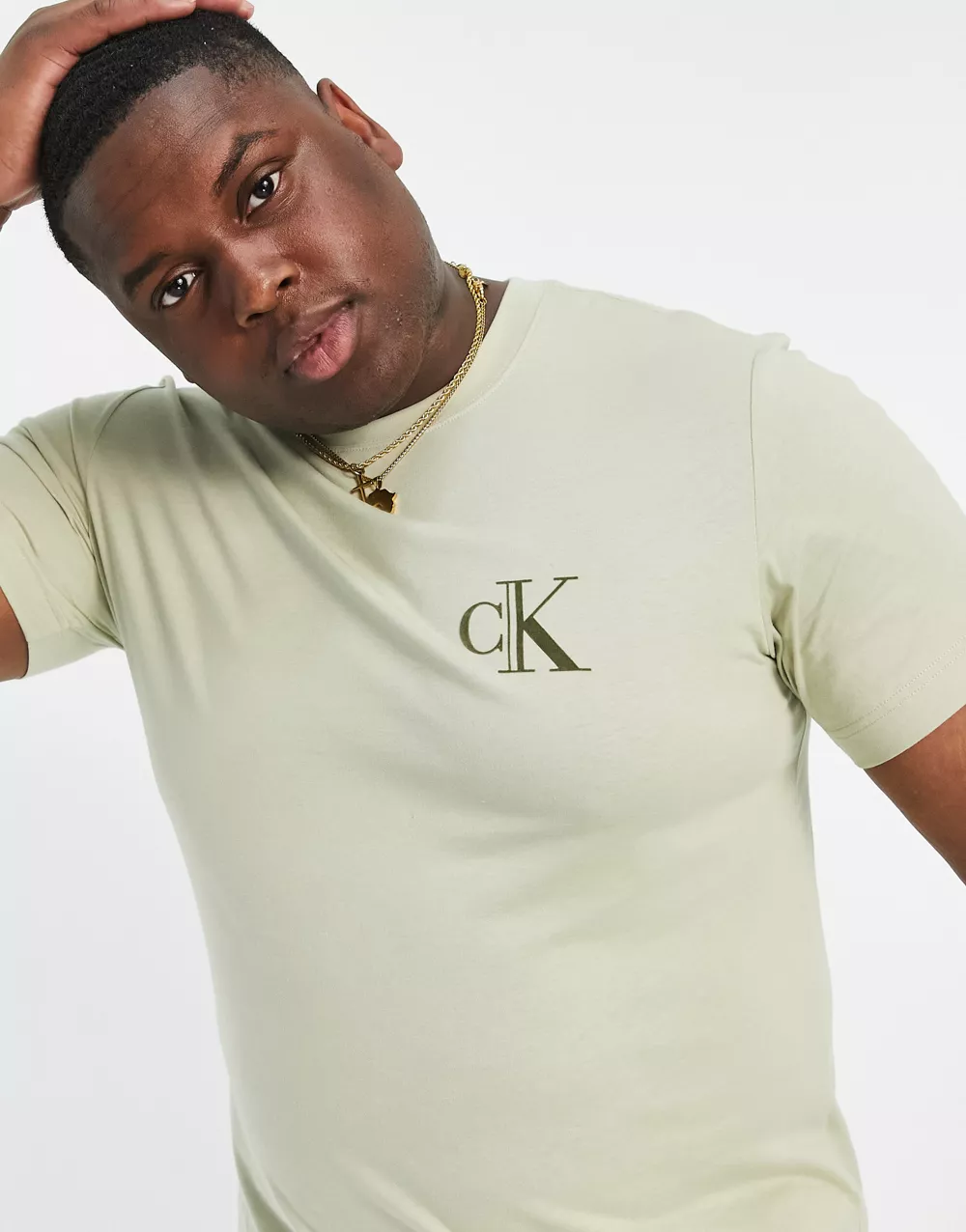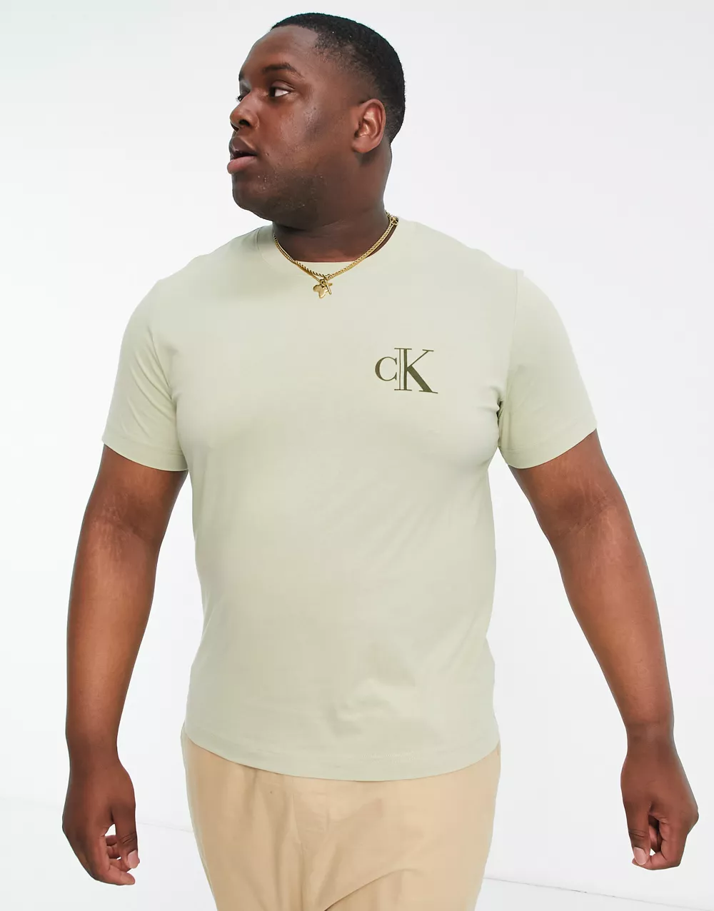 - Calvin Klein Jeans logo Big & Tall high t-shirt in stone