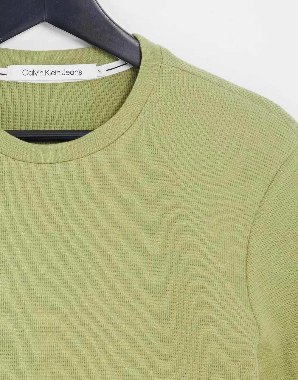 - Calvin Klein Jeans monogram badge waffle t-shirt in khaki