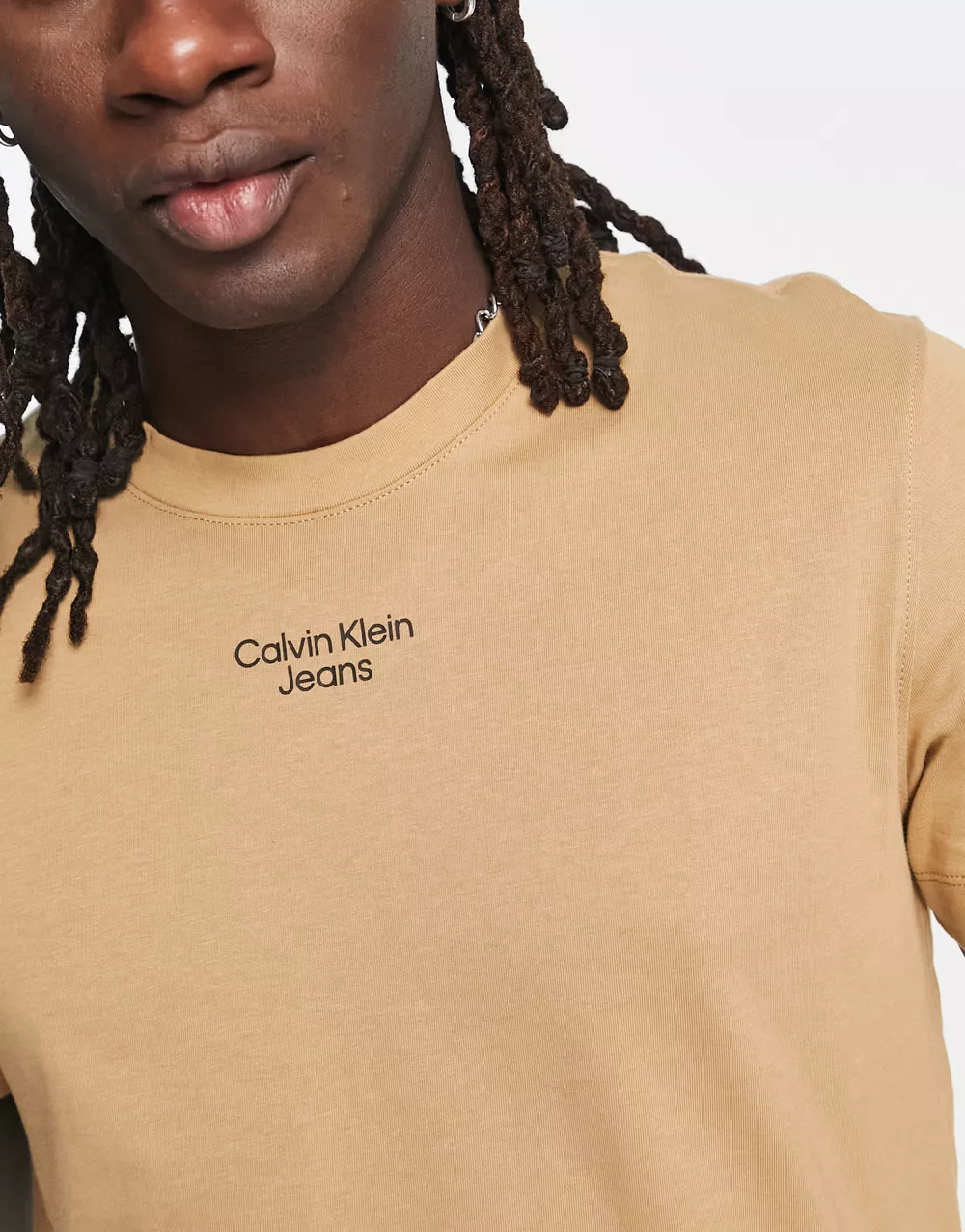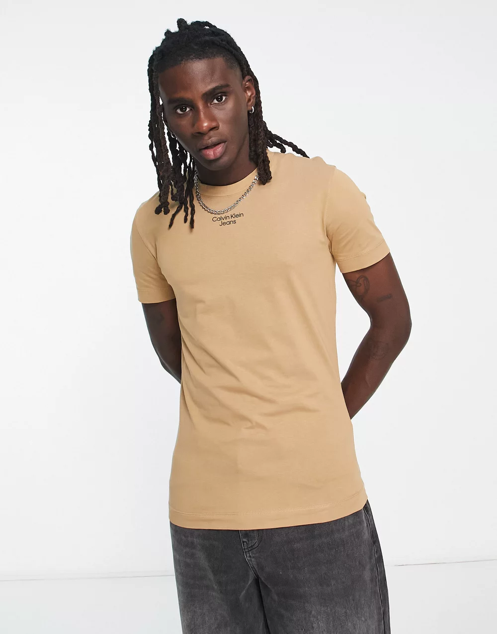 - Calvin Klein Jeans stacked logo t-shirt in camel