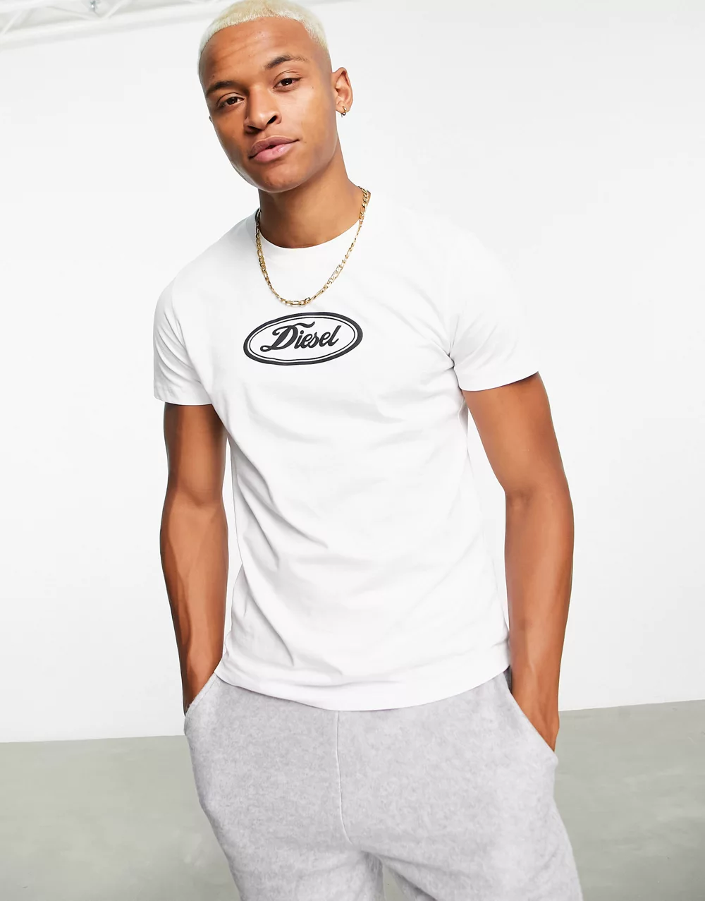 - Diesel T-Diego circle logo t-shirt in white 2720329630-50