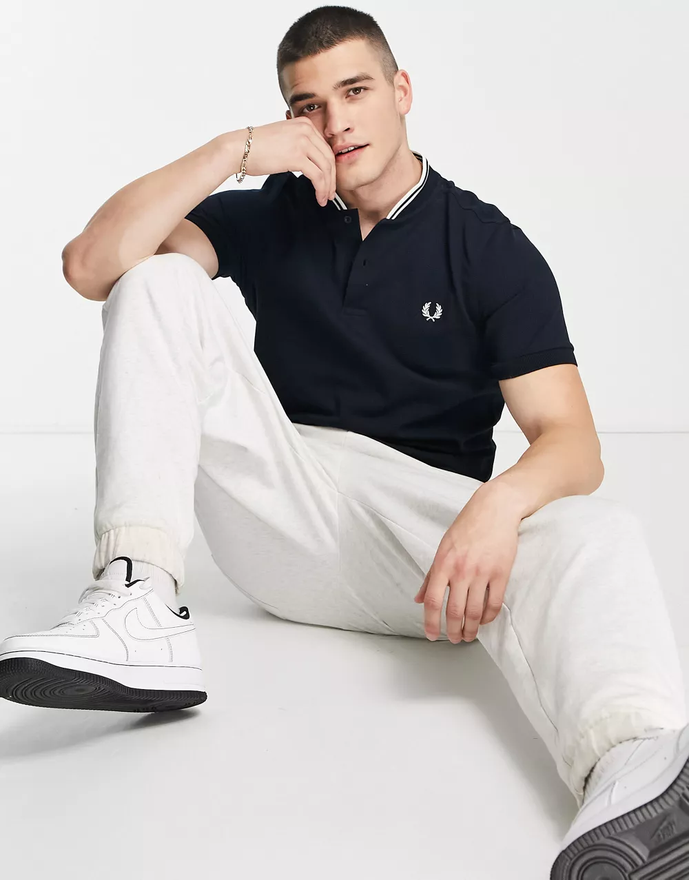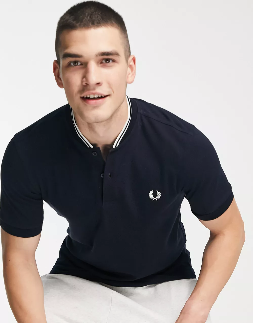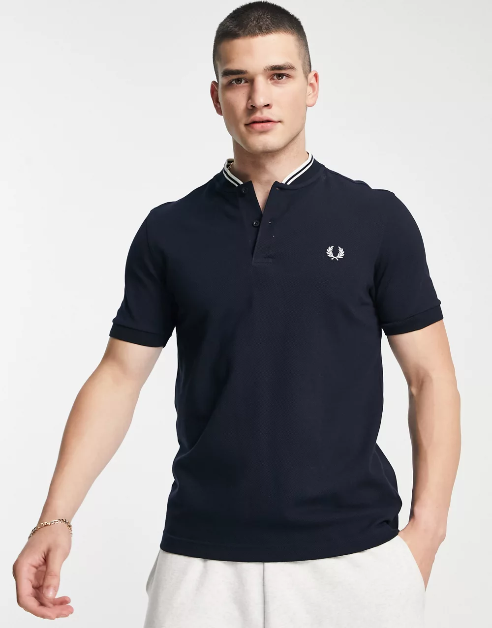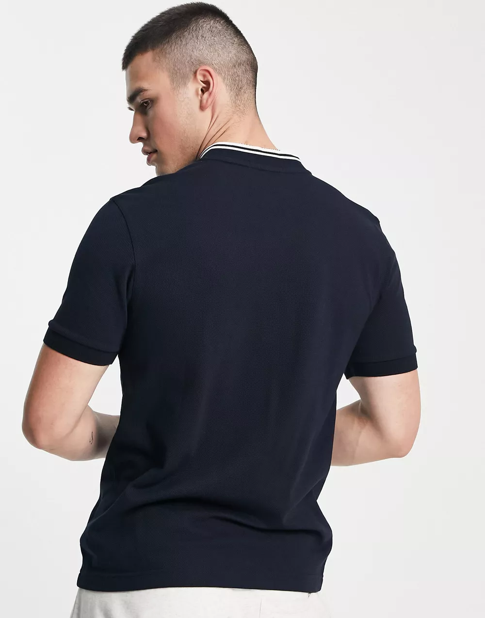 - Fred Perry bomber collar pique polo shirt in navy