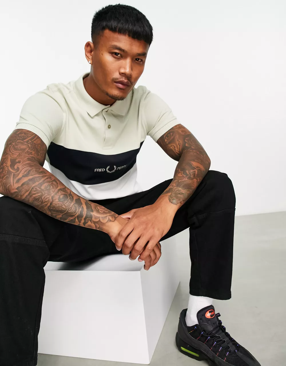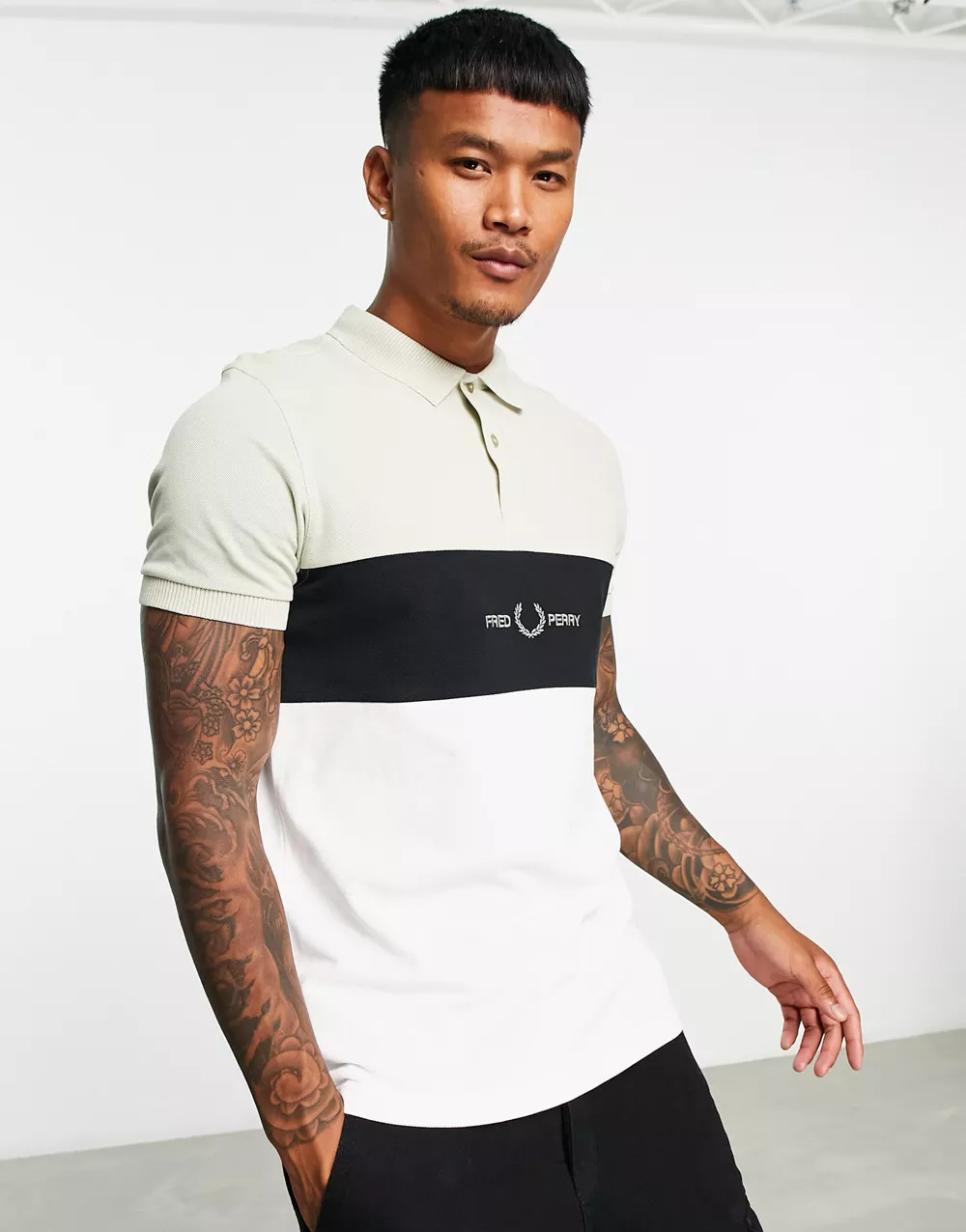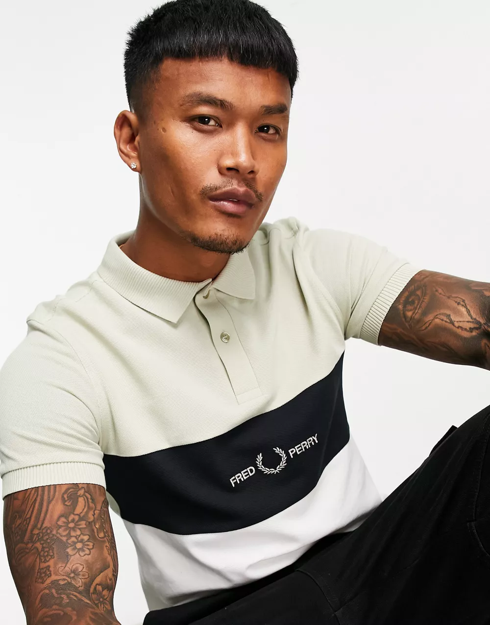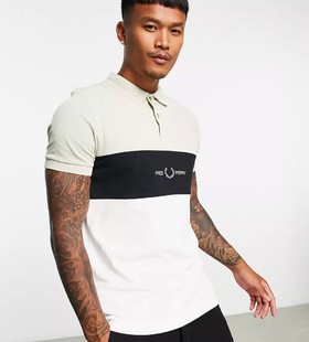 - Fred Perry embroidered panel polo shirt in cream