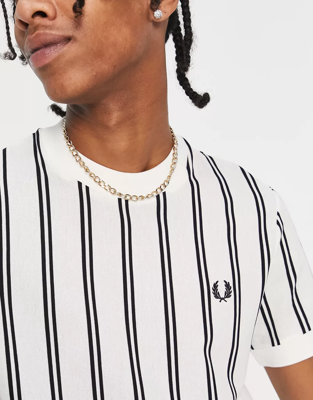 - Fred Perry fine stripe pique t-shirt in white