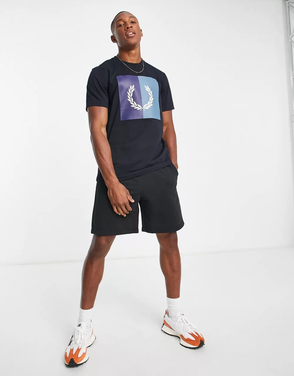 - Fred Perry laurel wreath box print t-shirt in navy