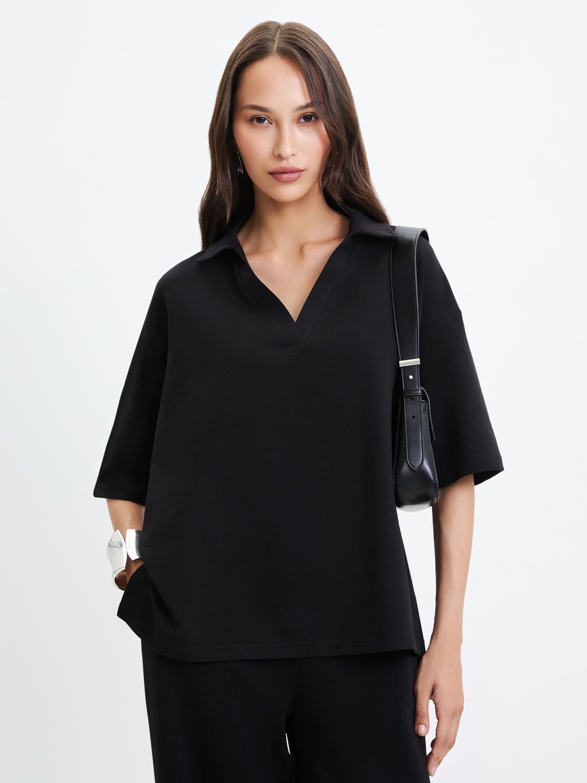 Параметры: Вырез горловины: V образный; Застежка: без застежки; Наличие карманов: без карманов; Тип рукава: короткий