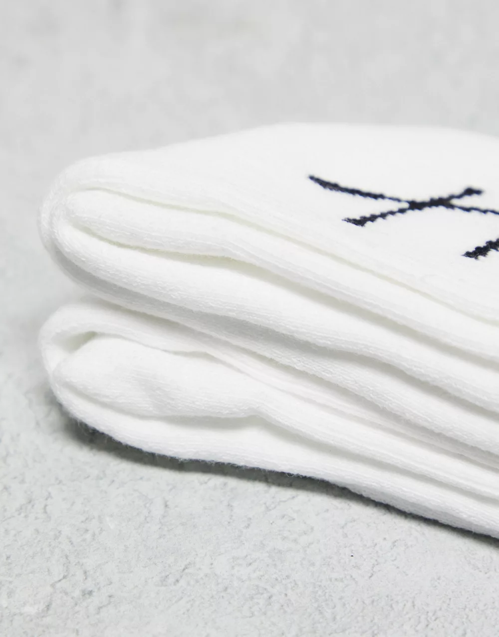 - HUGO Bodywear 2 pack crew socks with script logo in white
