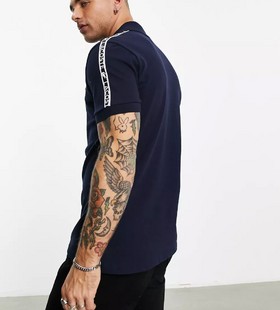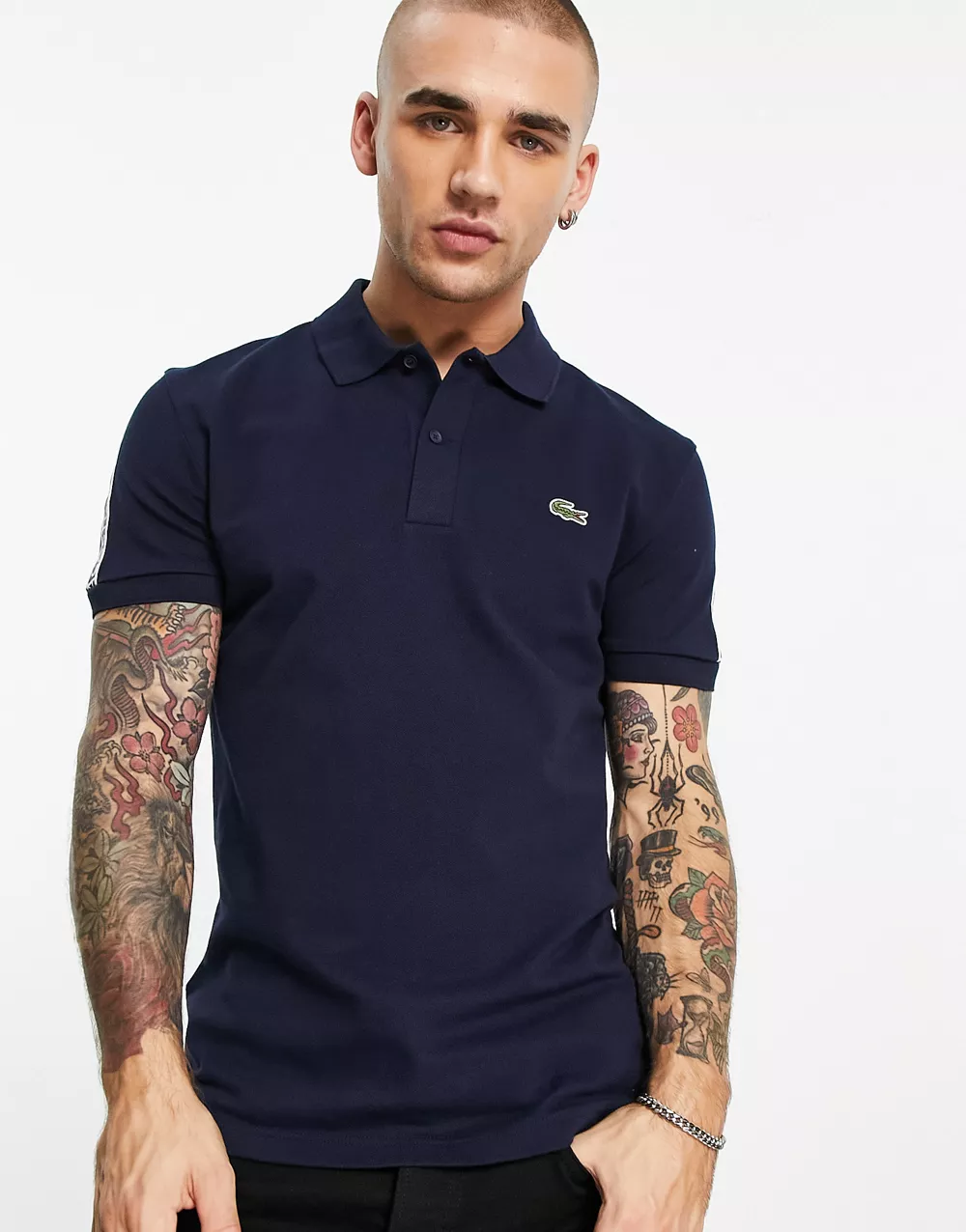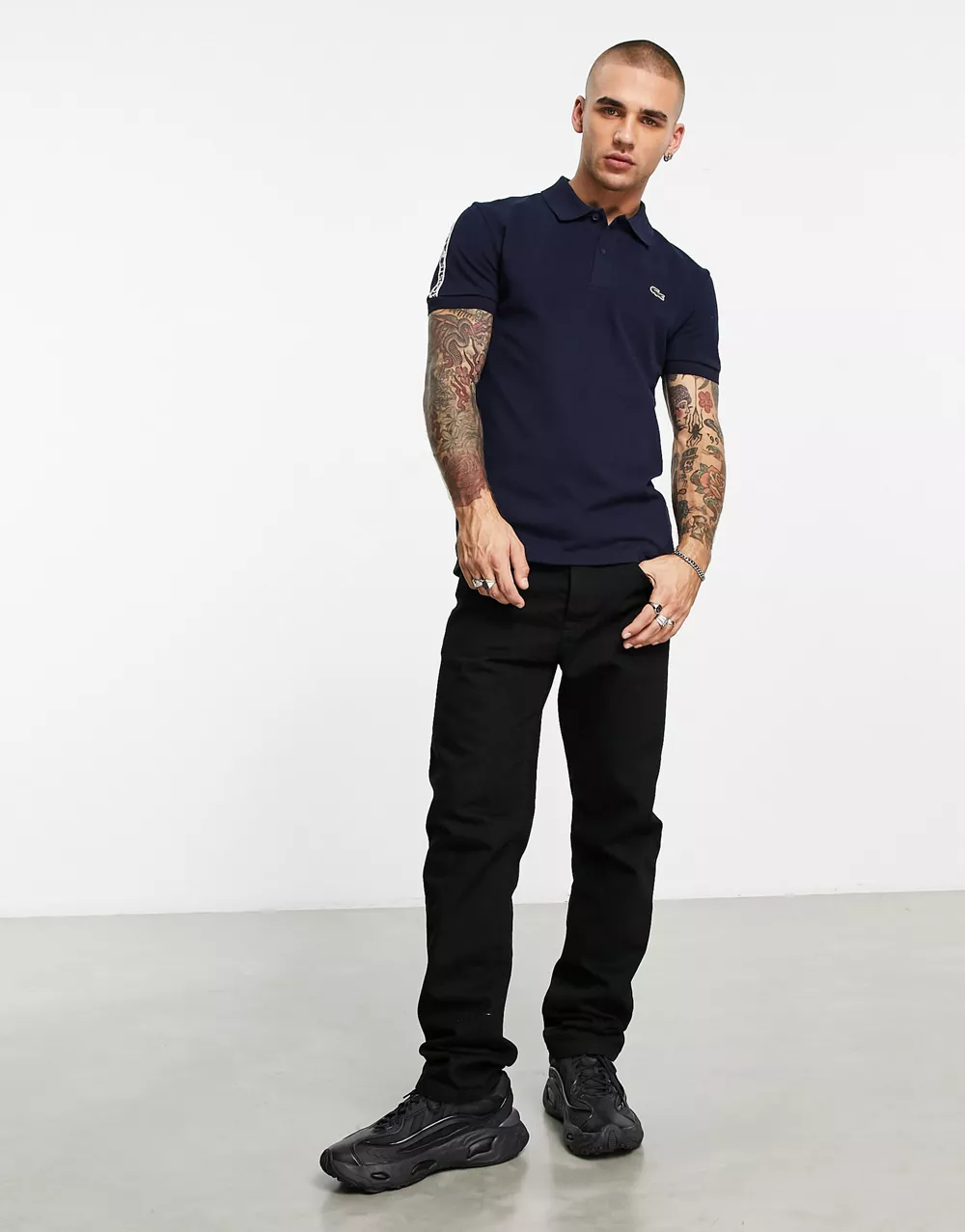 HUGO Dassaku retro long sleeve polo in dark orange with tapped detail