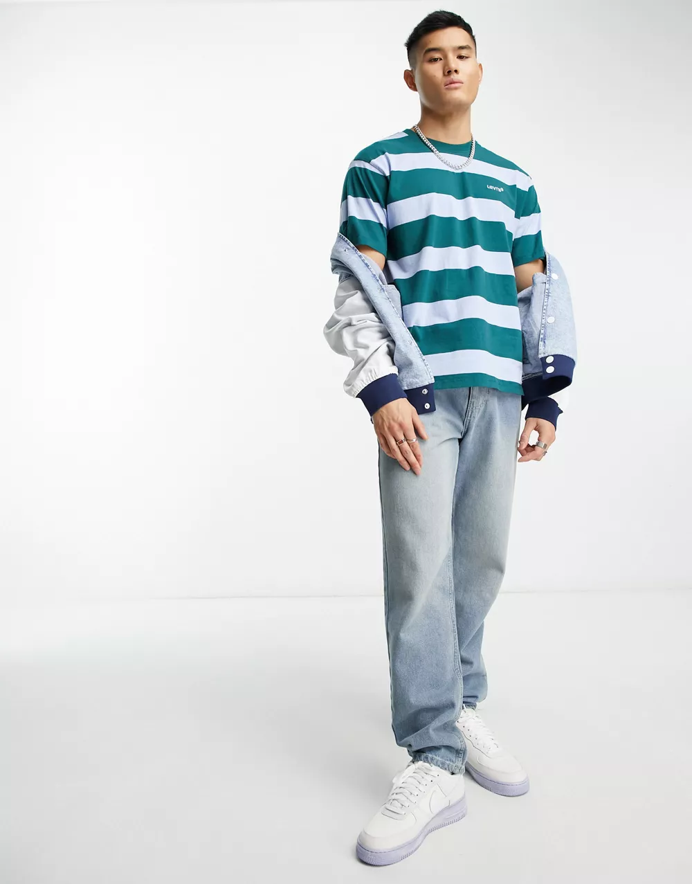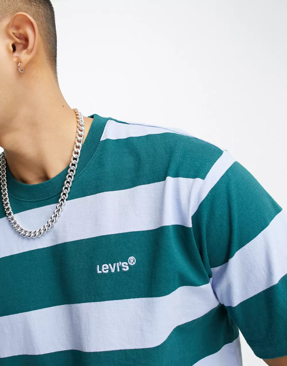- Levi's oversized t-shirt in green/blue stripe with small logo