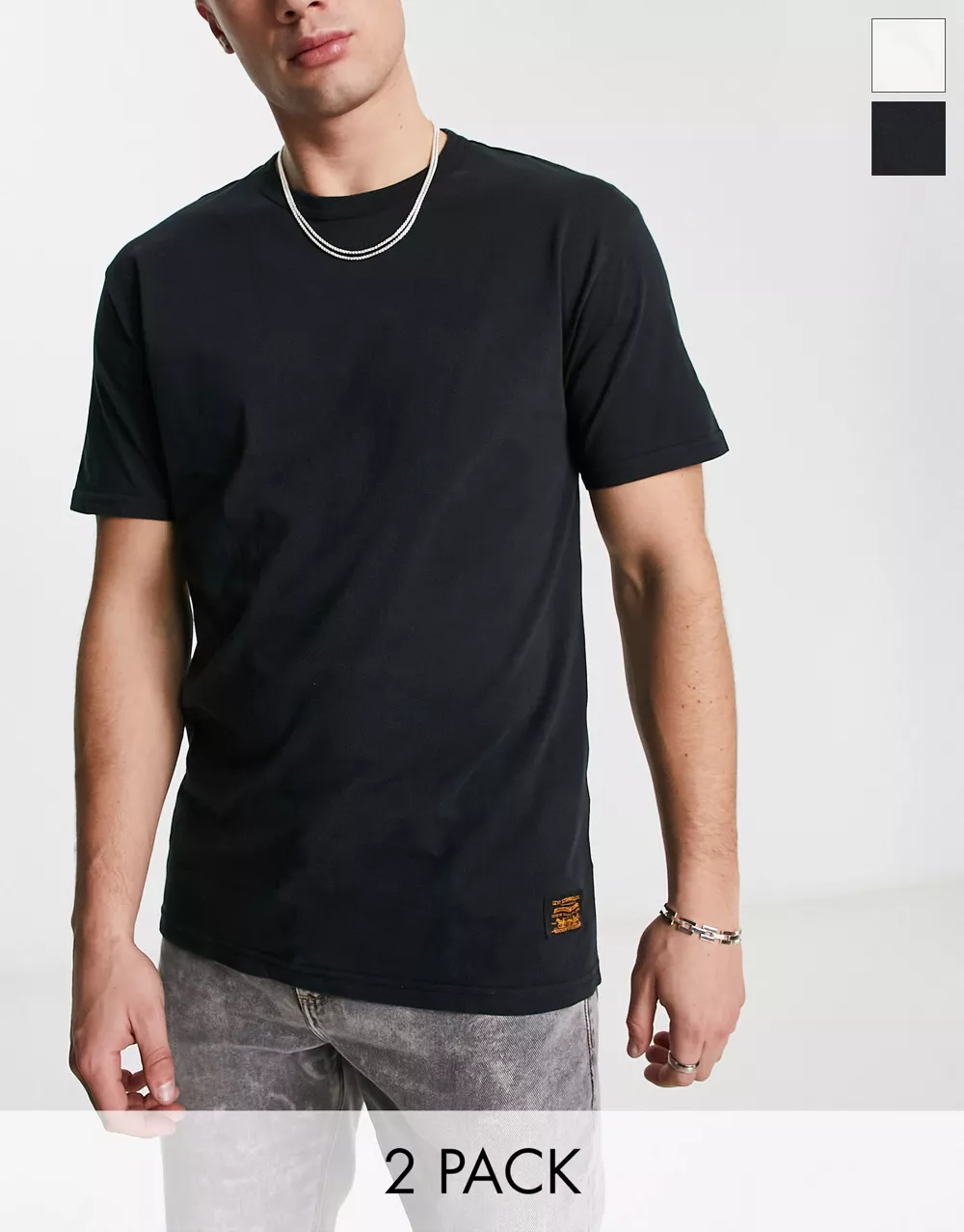- Levi's Skate 2 pack t-shirts in white/black with small hem logo