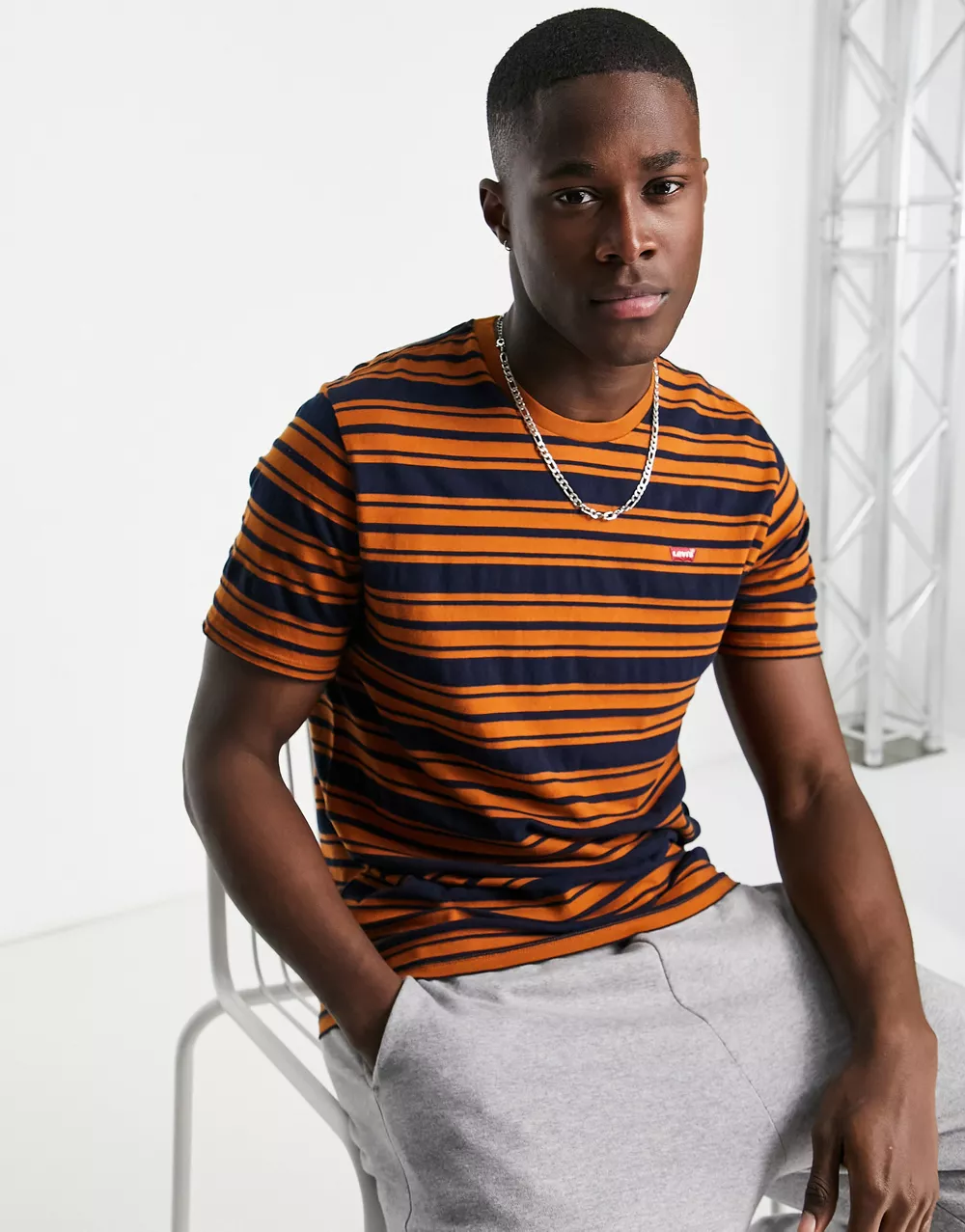 - Levi's striper t-shirt in navy/orange with small logo