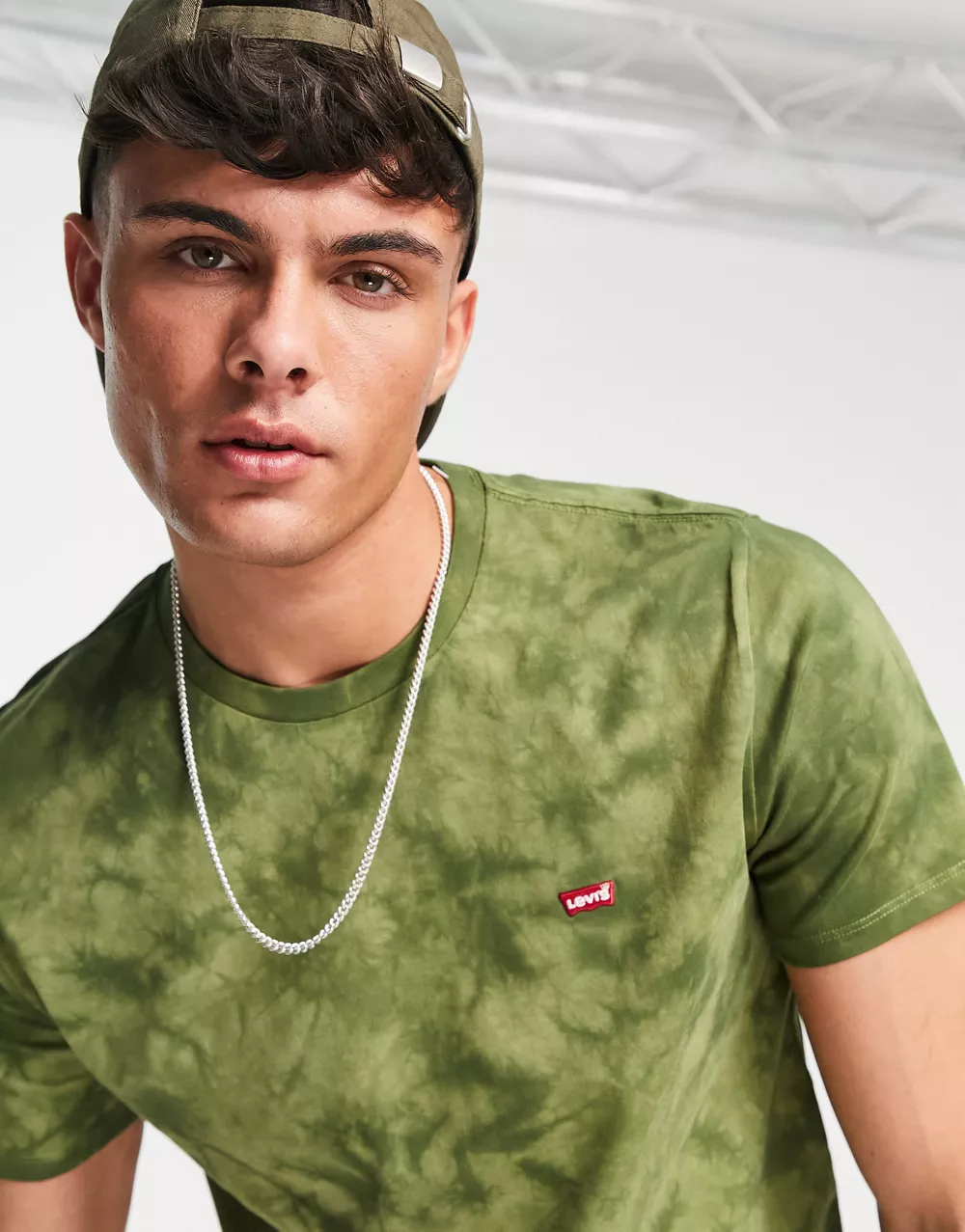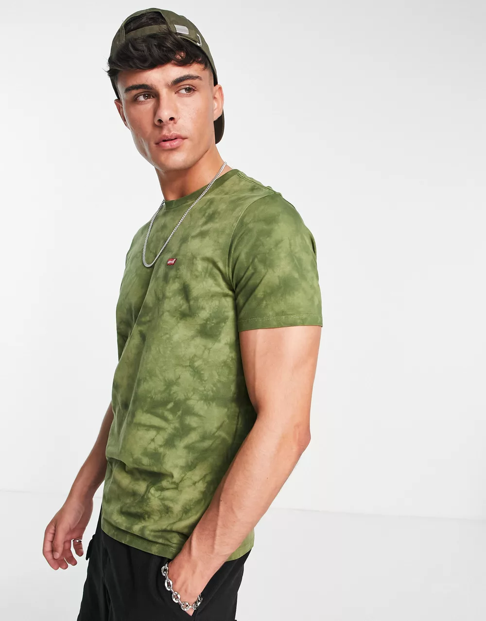 - Levi's t-shirt tie dye print with small batwing logo in olive green