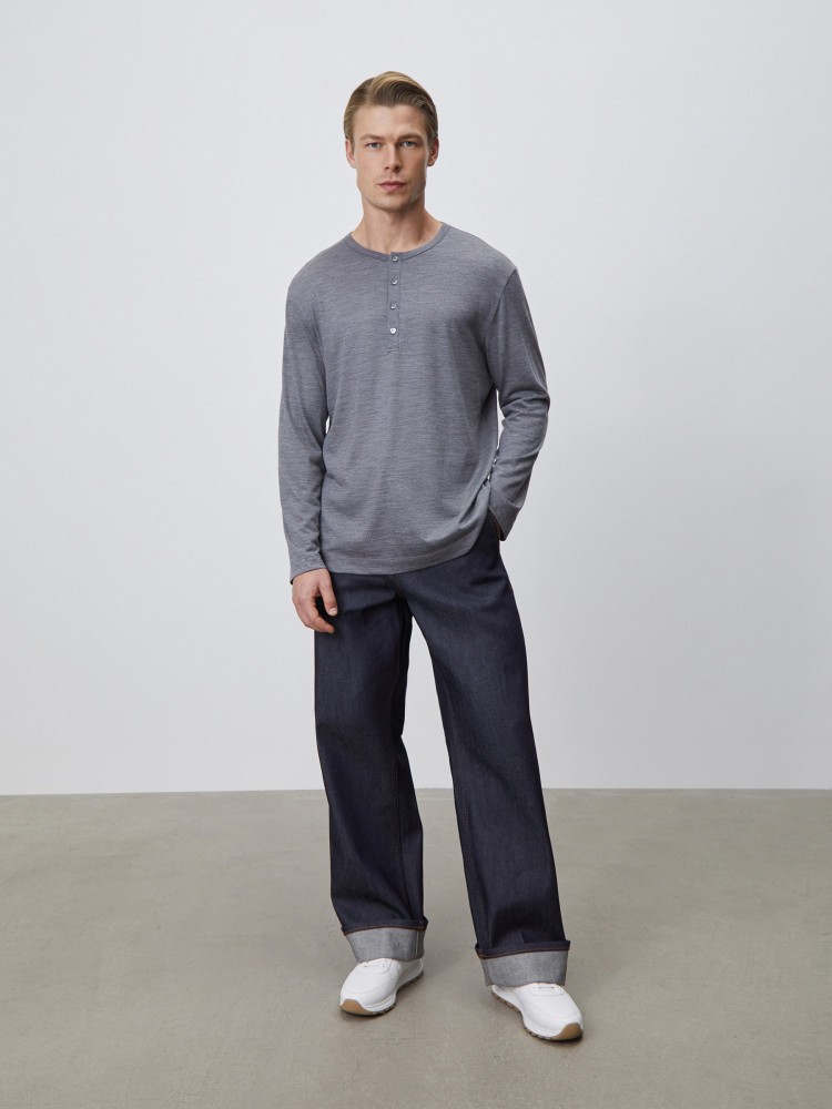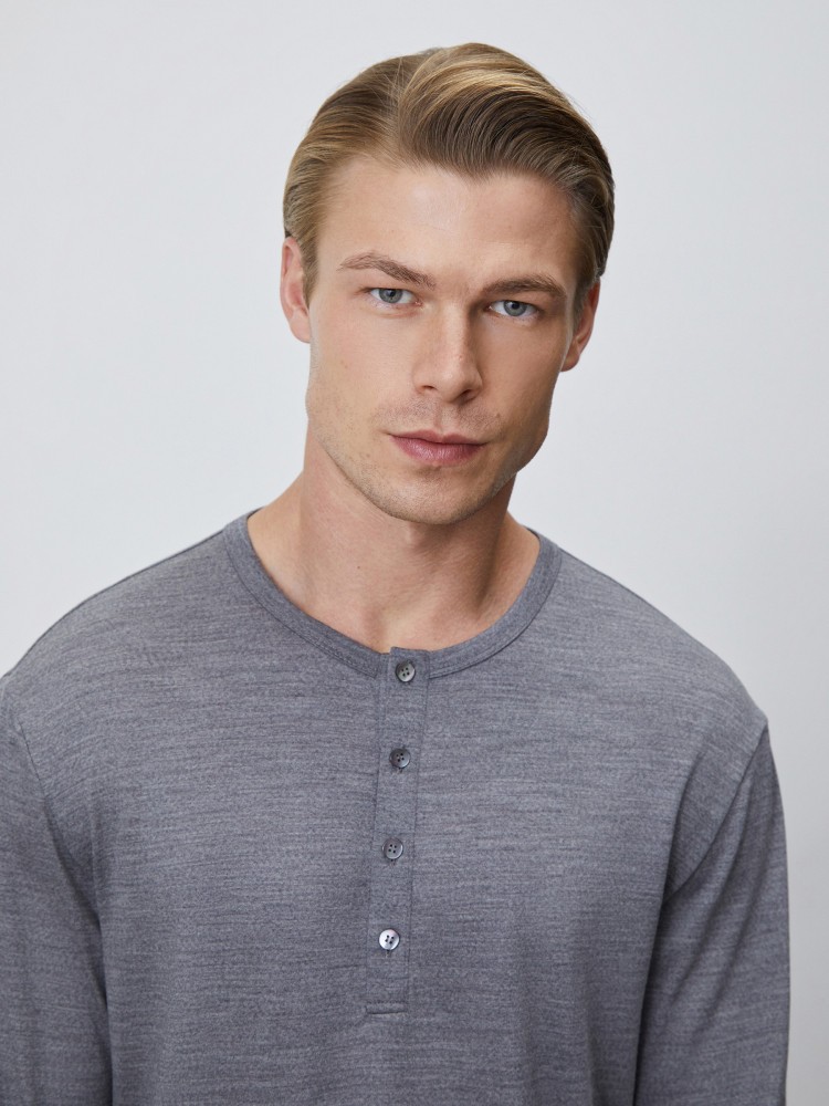 Polo Ralph Lauren icon logo pima cotton henley long sleeve top in grey marl