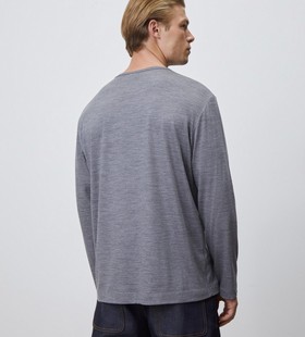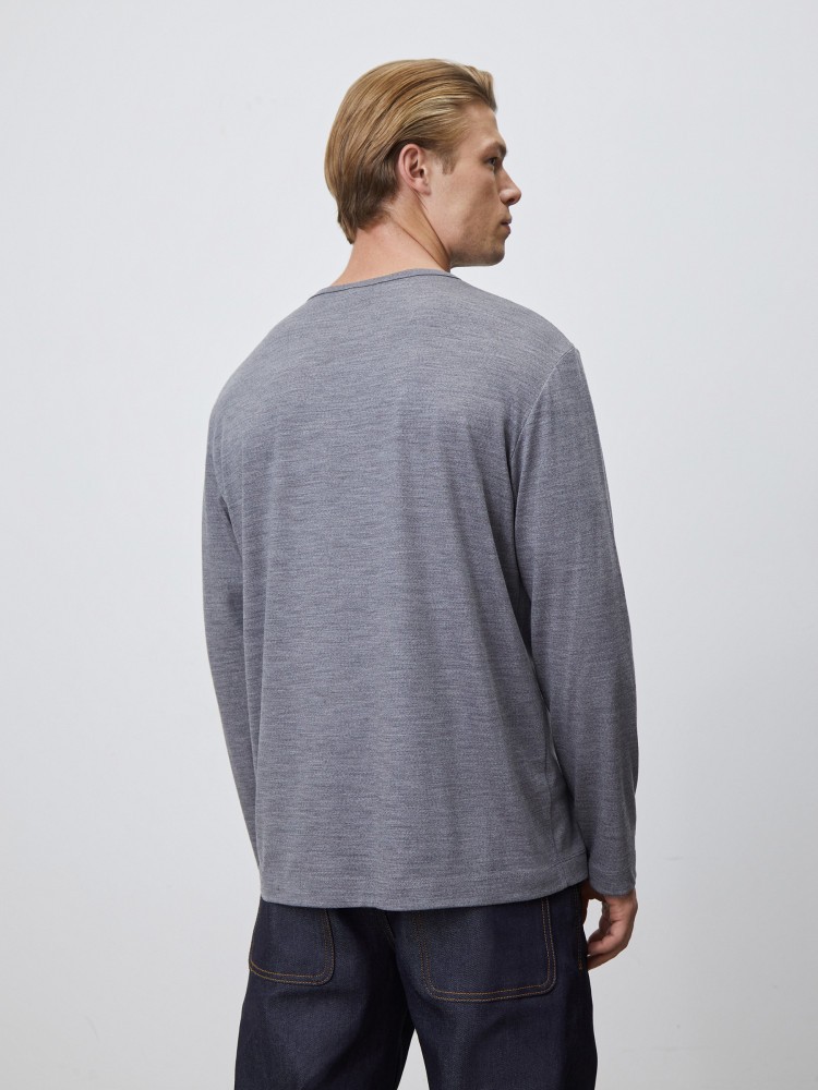 Лонгслив из итальянского трикотажа — чуть более расслабленная альтернатива тонким водолазкам. Модель создана из нежной шерсти мериноса, дышащей и легкой, с едва заметным блеском, который подчеркивают пуговицы из натурального перламутра.Сделано в России.