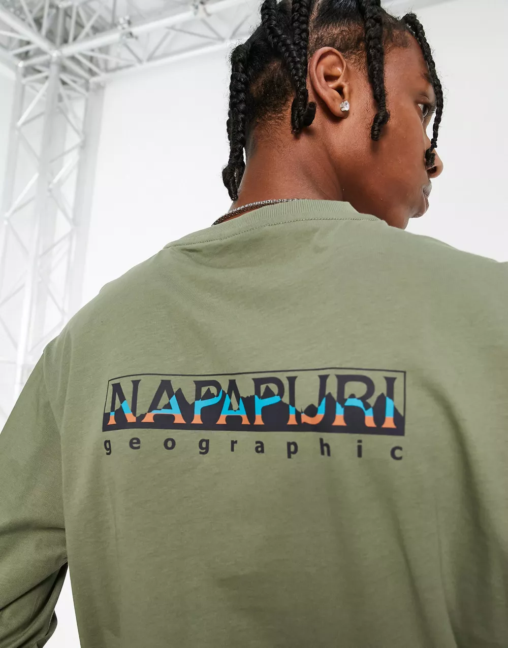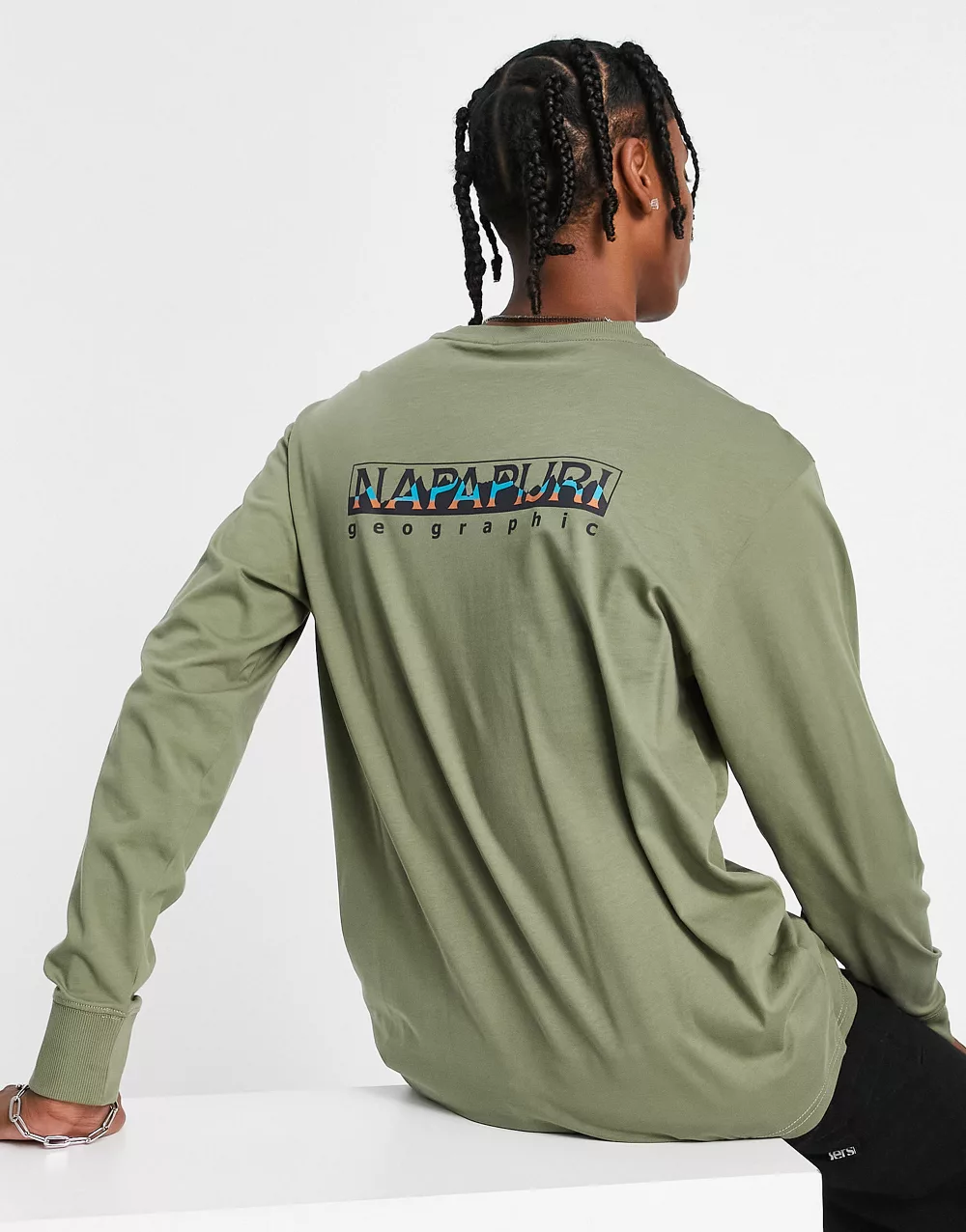 - Napapijri box logo back print long sleeve t-shirt in khaki
