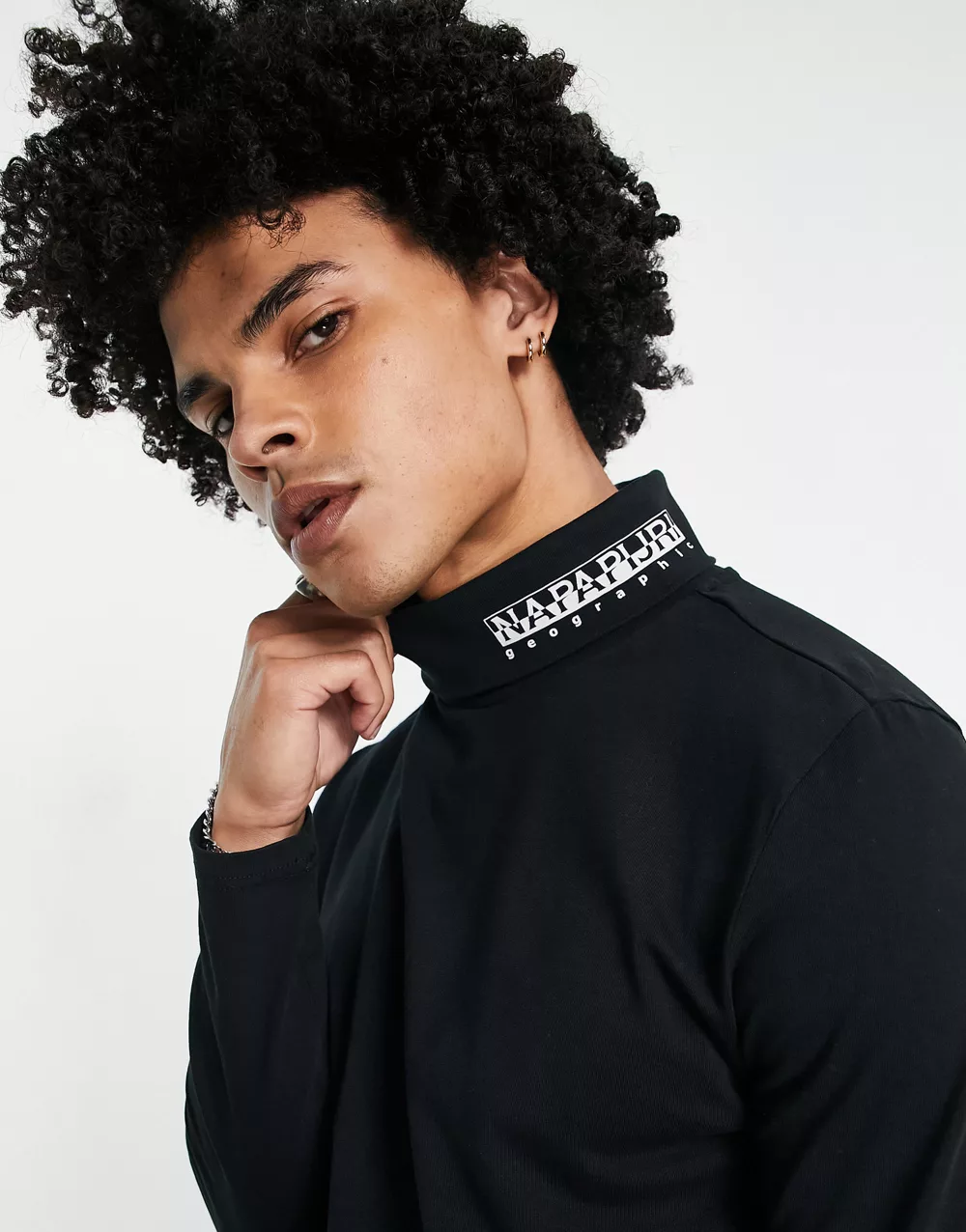 - Napapijri long sleeve t-shirt with high neck box logo in black