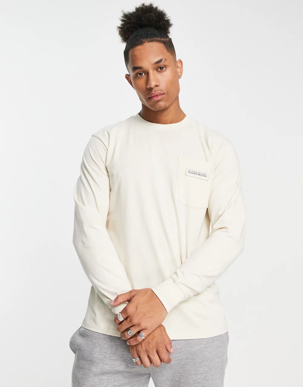 - Napapijri morgex pocket long sleeve t-shirt in off white