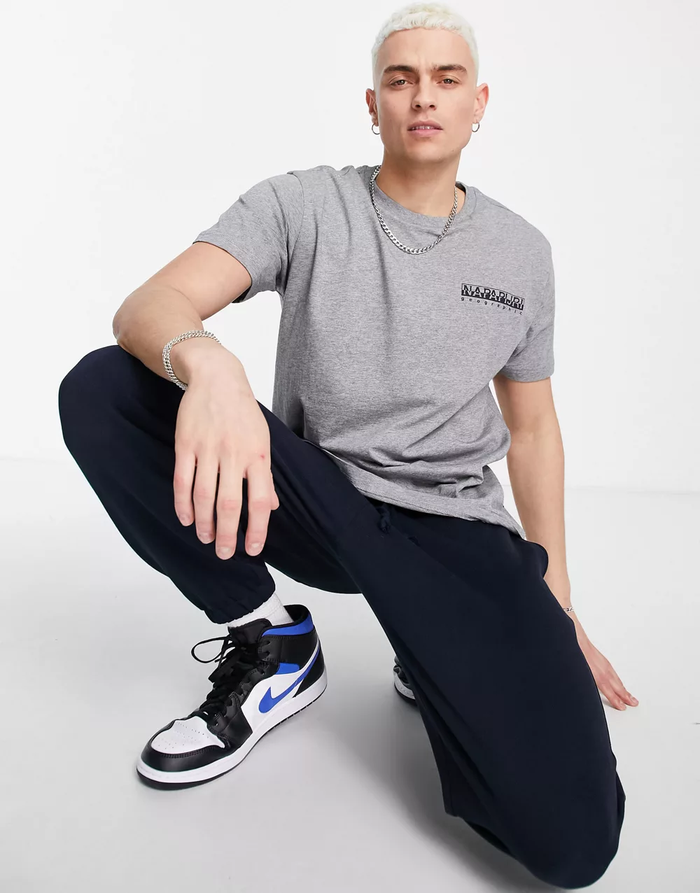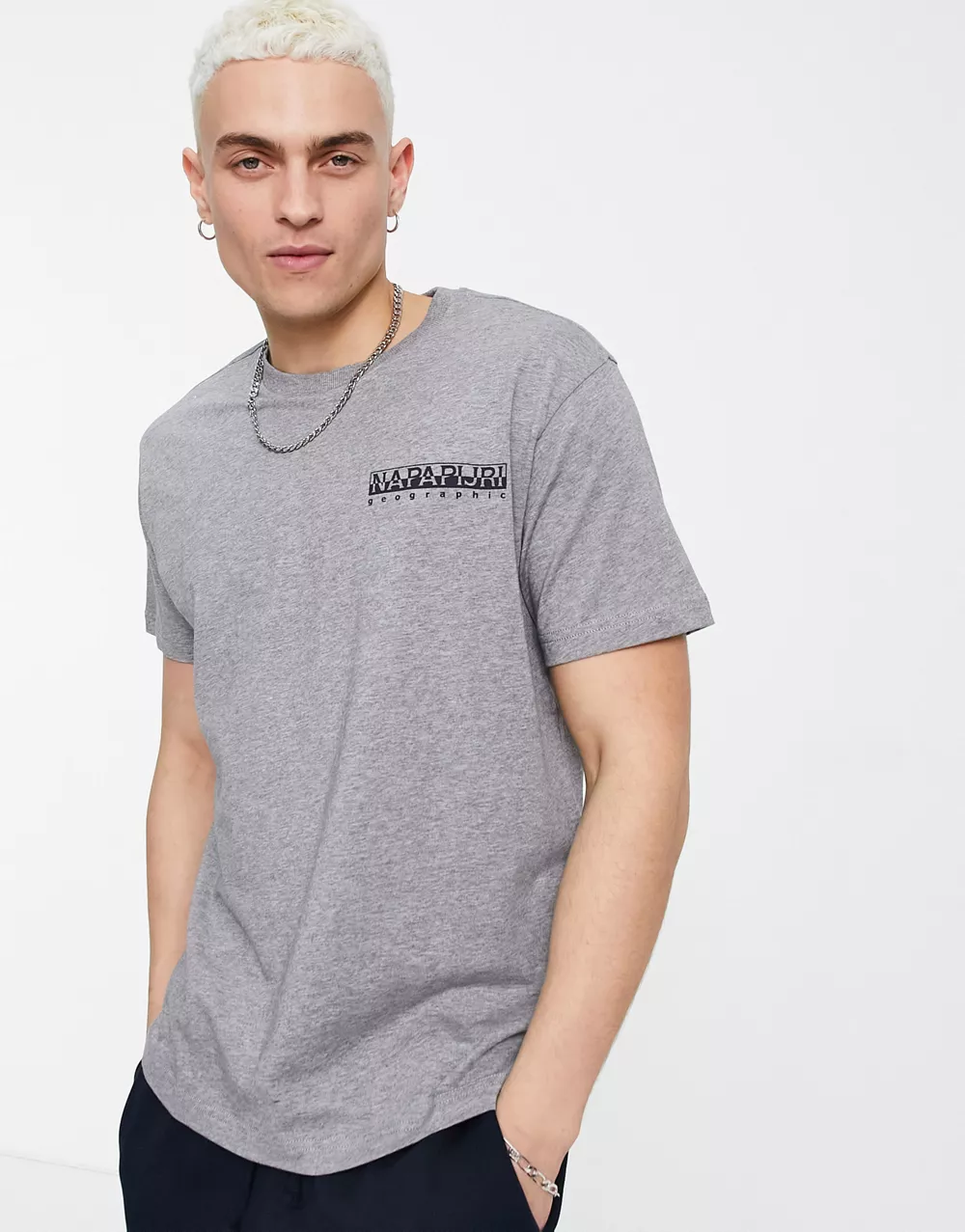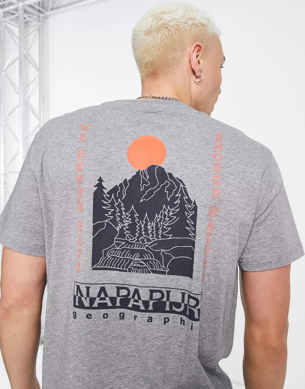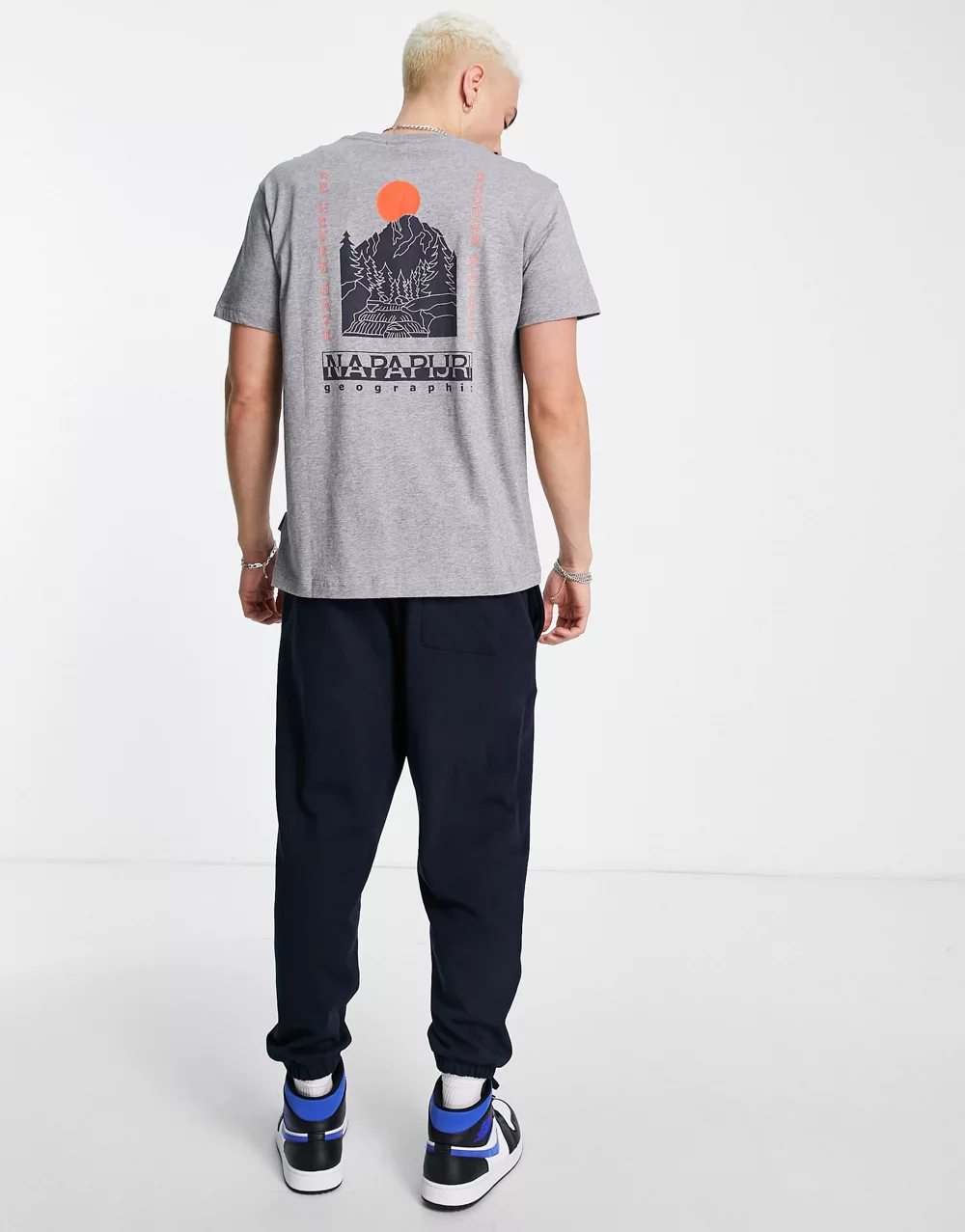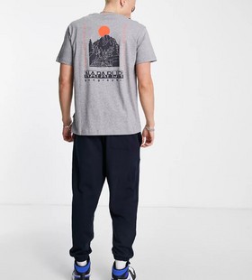 - Napapijri Quintino back print t-shirt in light grey