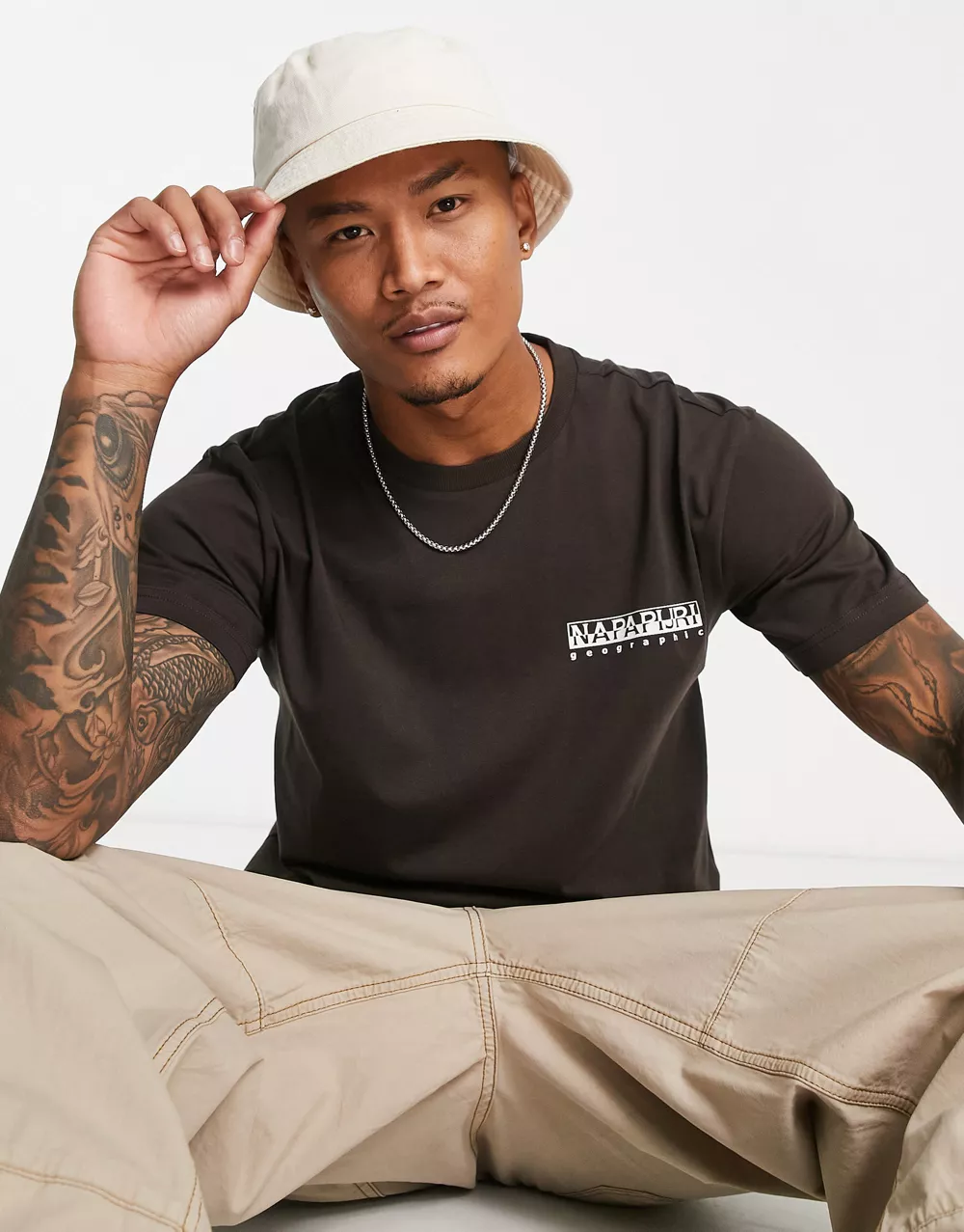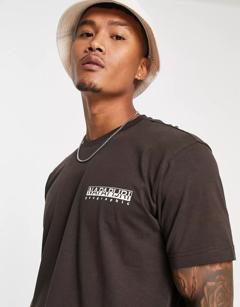 - Napapijri s-telemark mountain backprint t-shirt in brown