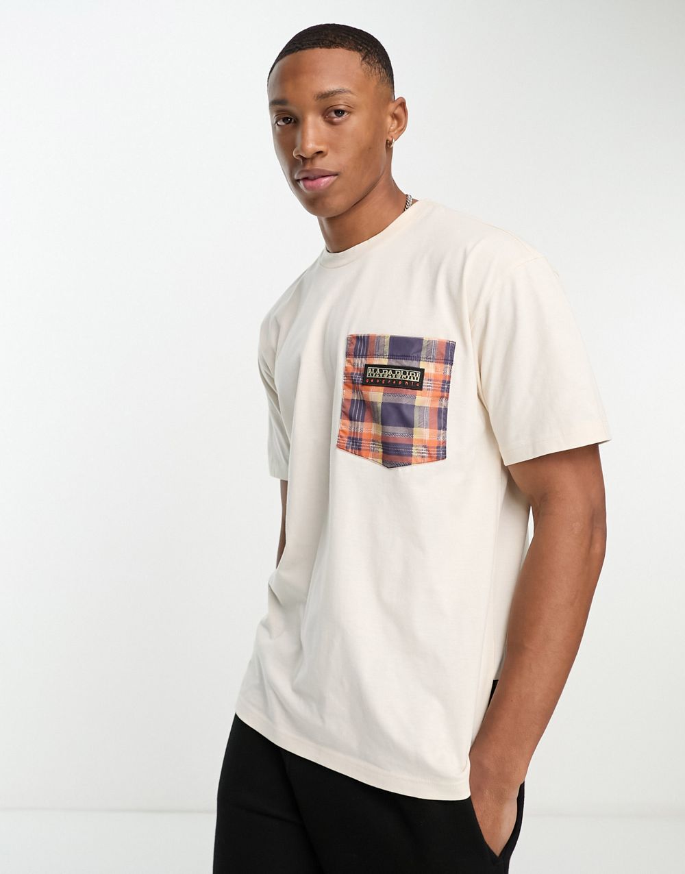- Napapijri x Liberty Candolle patch pocket t-shirt in off white