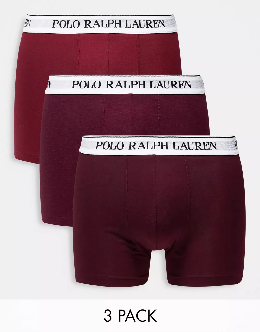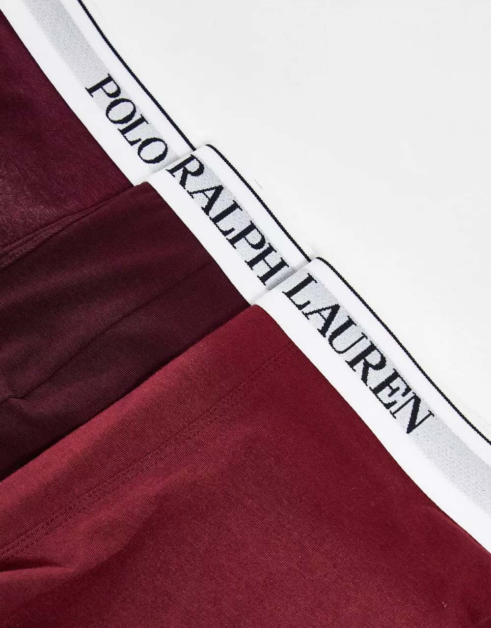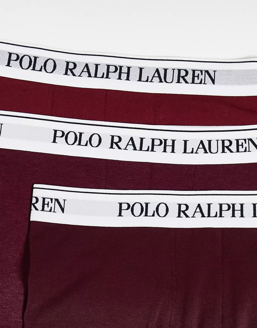 - Polo Ralph Lauren 3 pack trunks in burgundy with contrasting logo waistband